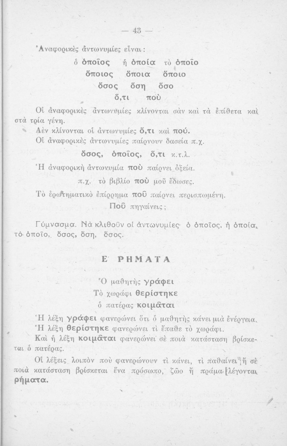 Μαθητικό βοήθημα Γλώσσας Δημοτικού που περιλαμβάνει τους κανόνες γραμματικής και παραδείγματα.