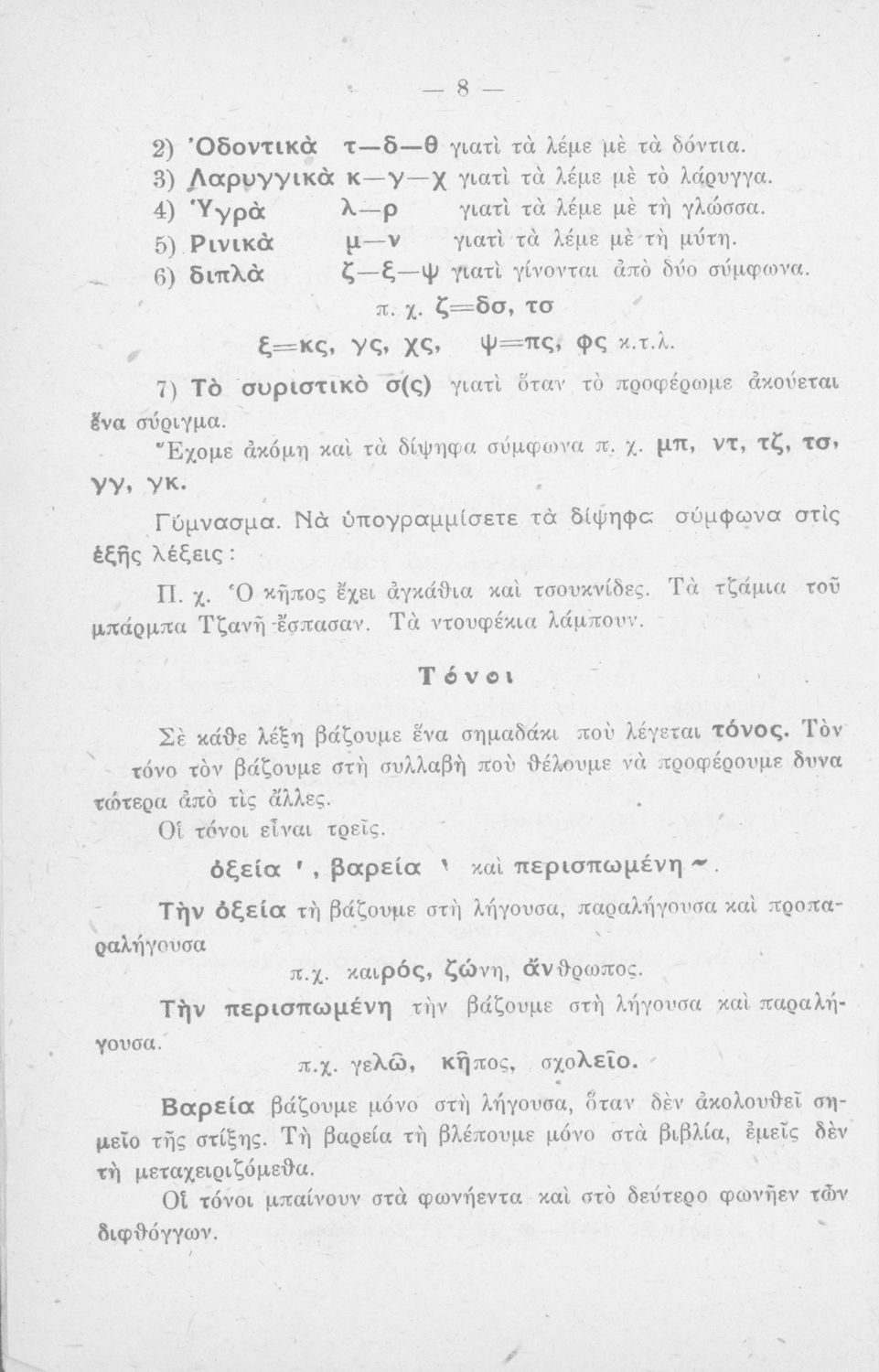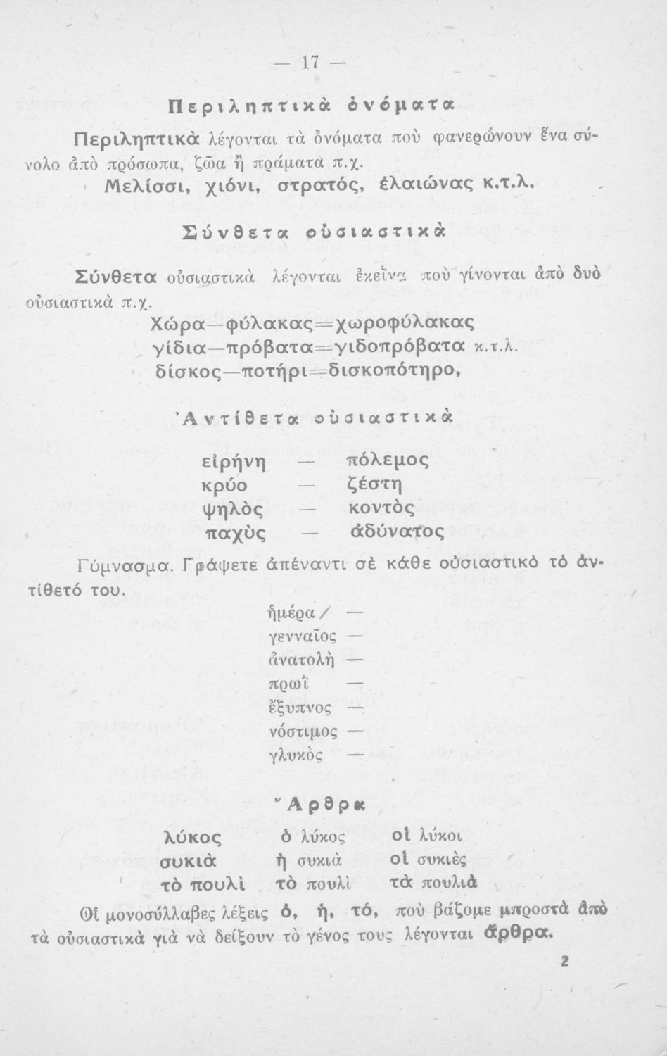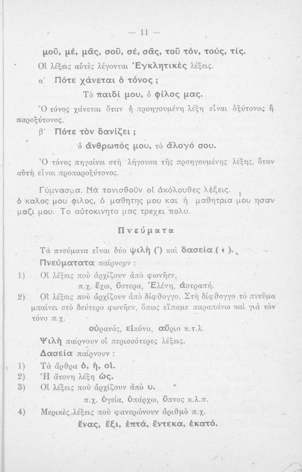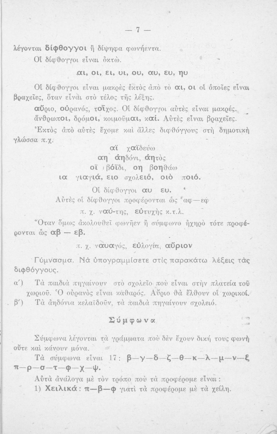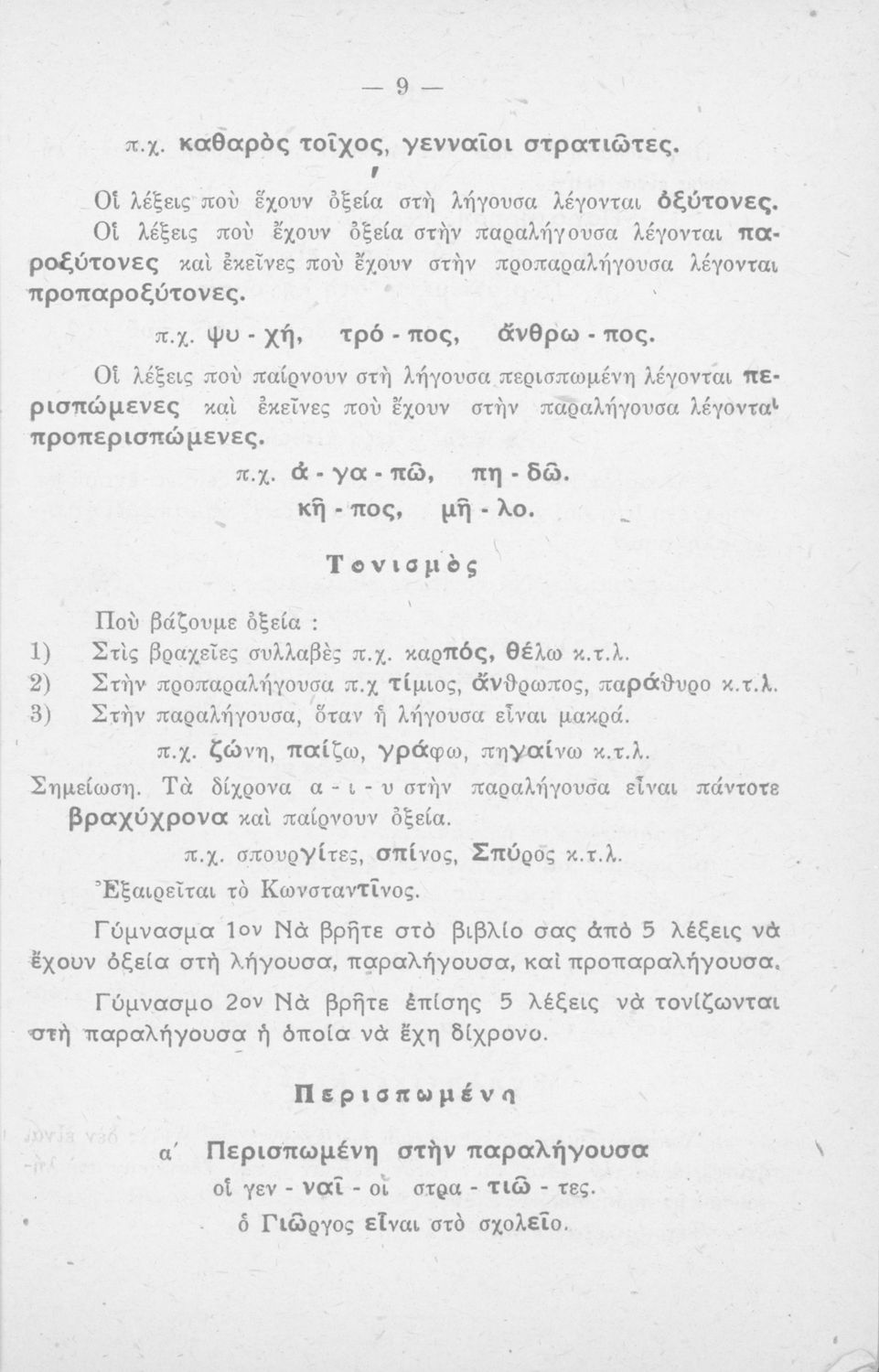 Μαθητικό βοήθημα Γλώσσας Δημοτικού που περιέχει τους γραμματικούς κανόνες της νέας ελληνικής. Ο συγγραφέας ήταν δημοδιδάσκαλος και διδάκτωρ της Νομικής.