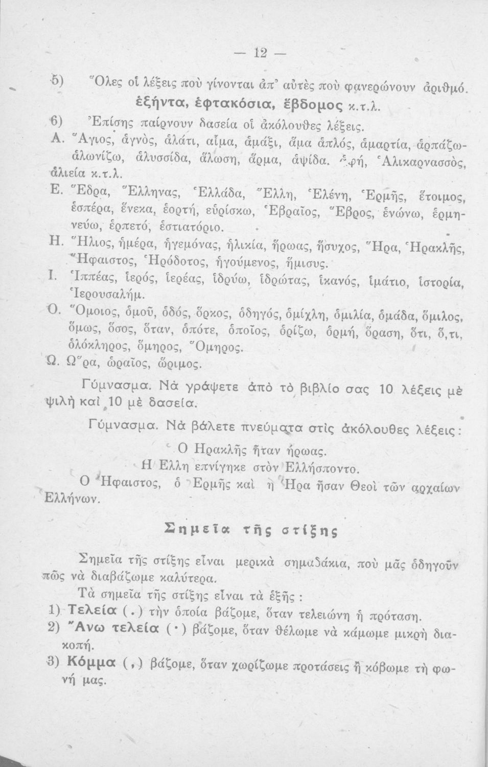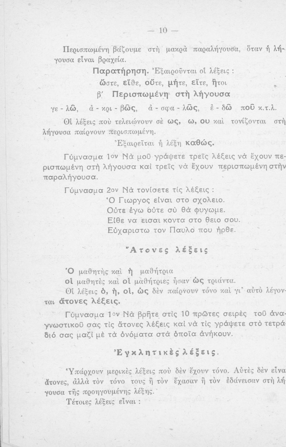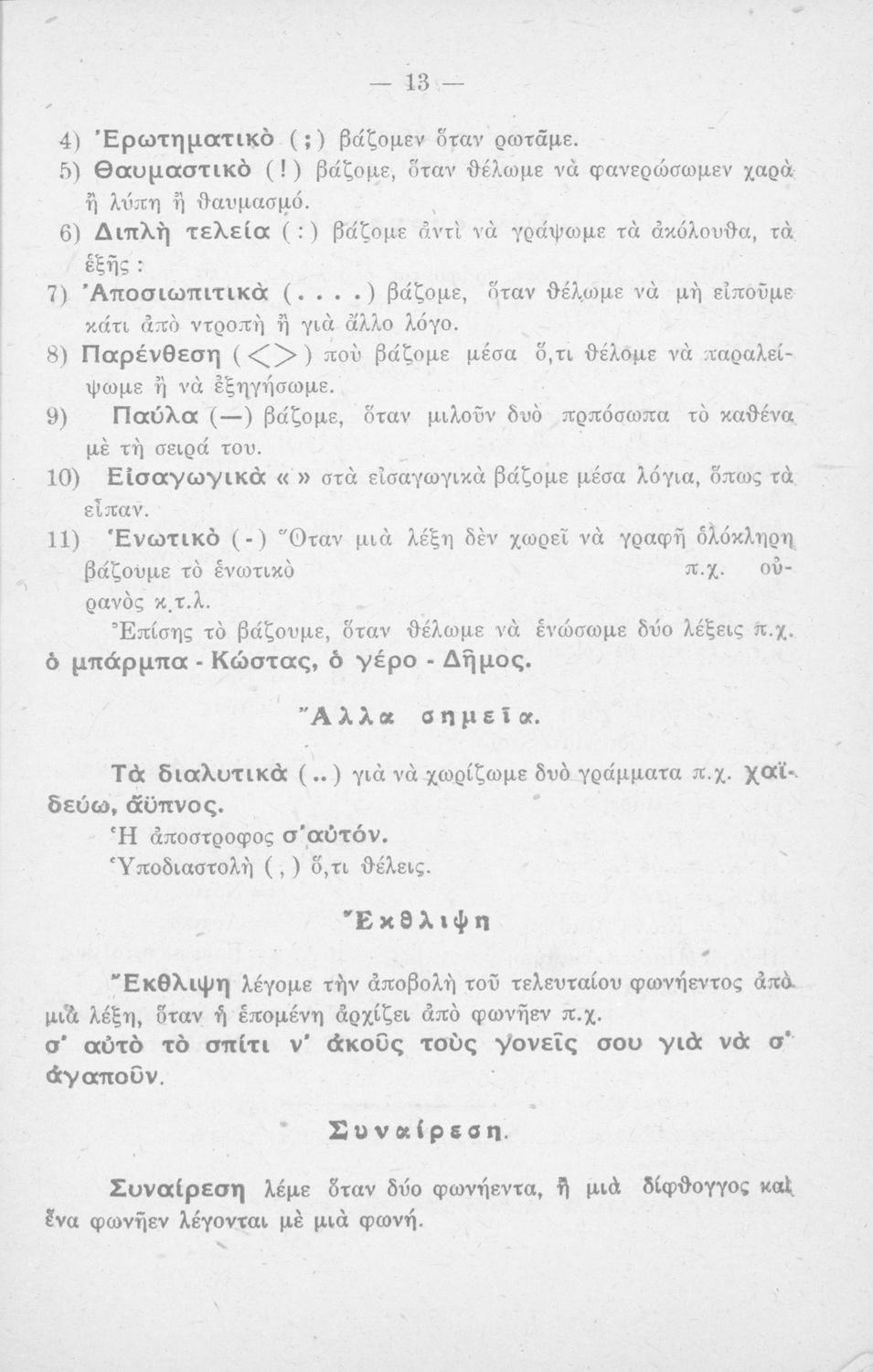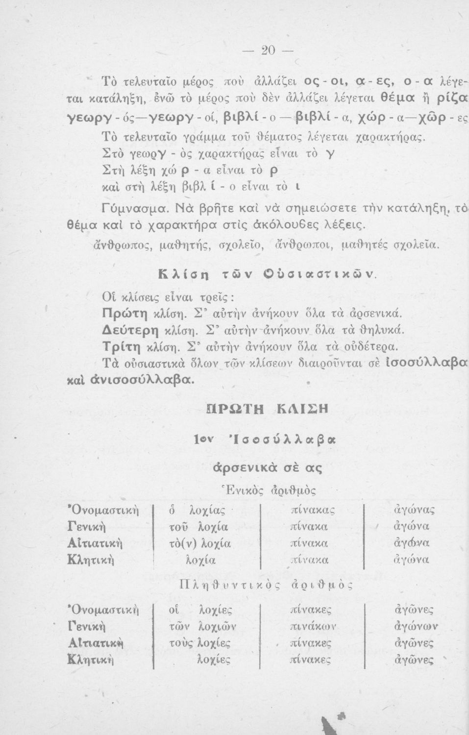 Μαθητικό βοήθημα Γλώσσας Δημοτικού που περιέχει τους γραμματικούς κανόνες της νέας ελληνικής. Ο συγγραφέας ήταν δημοδιδάσκαλος και διδάκτωρ της Νομικής.