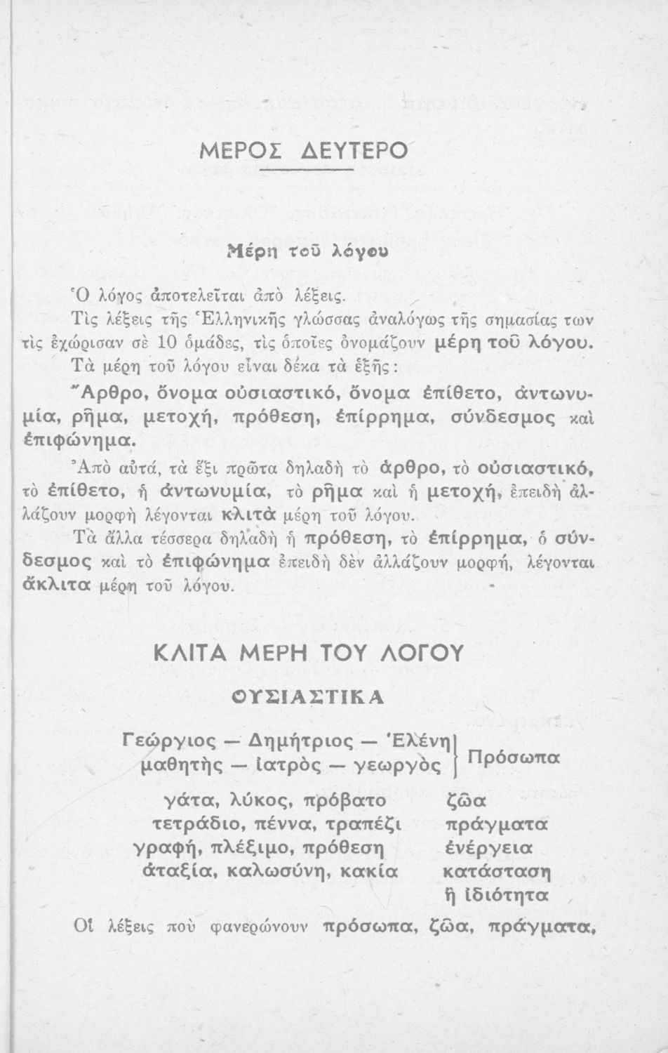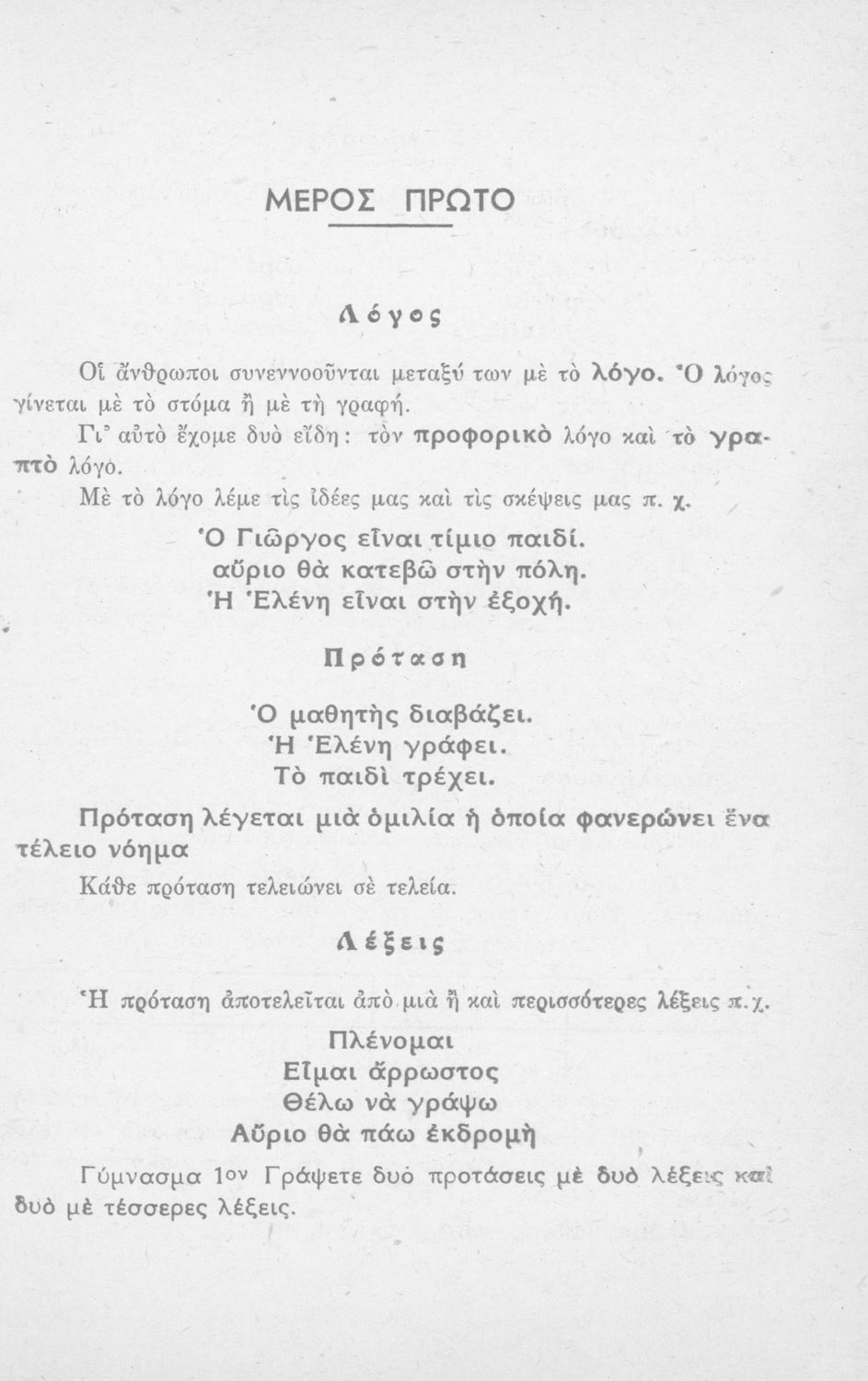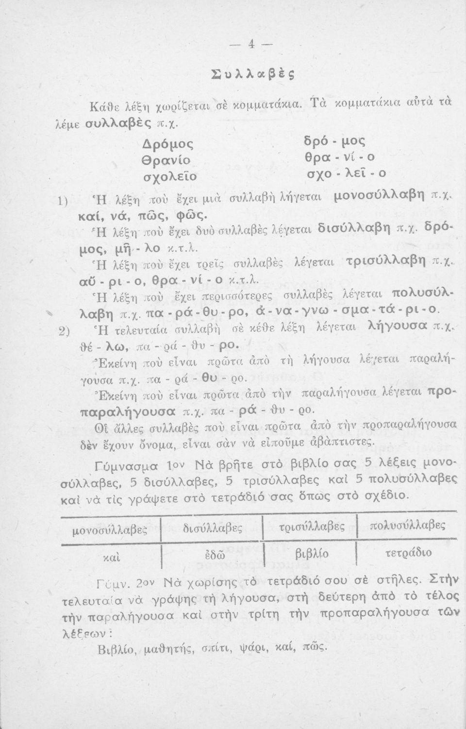 Σχολικό εγχειρίδιο Γλώσσας Δ΄ Δημοτικού που περιλαμβάνει τους κανόνες γραμματικής και τη δομή της νέας ελληνικής και είναι χωρισμένο στο φωνητικό, τυπικό και παραγωγικό μέρος.