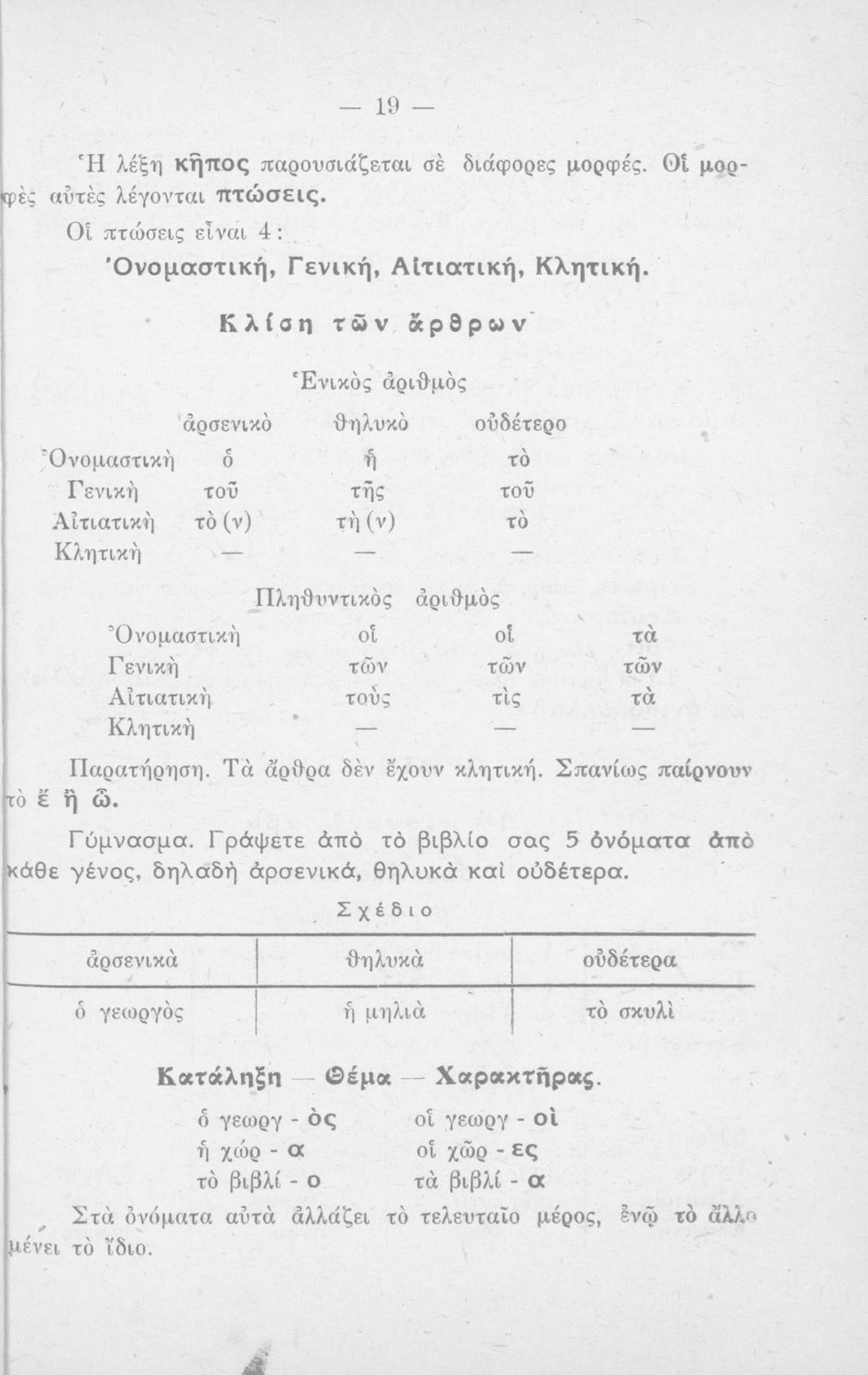 Σχετιζόμενοι όροι:  πτώσεις, ουσιαστικά, επίθετα, ρήματα