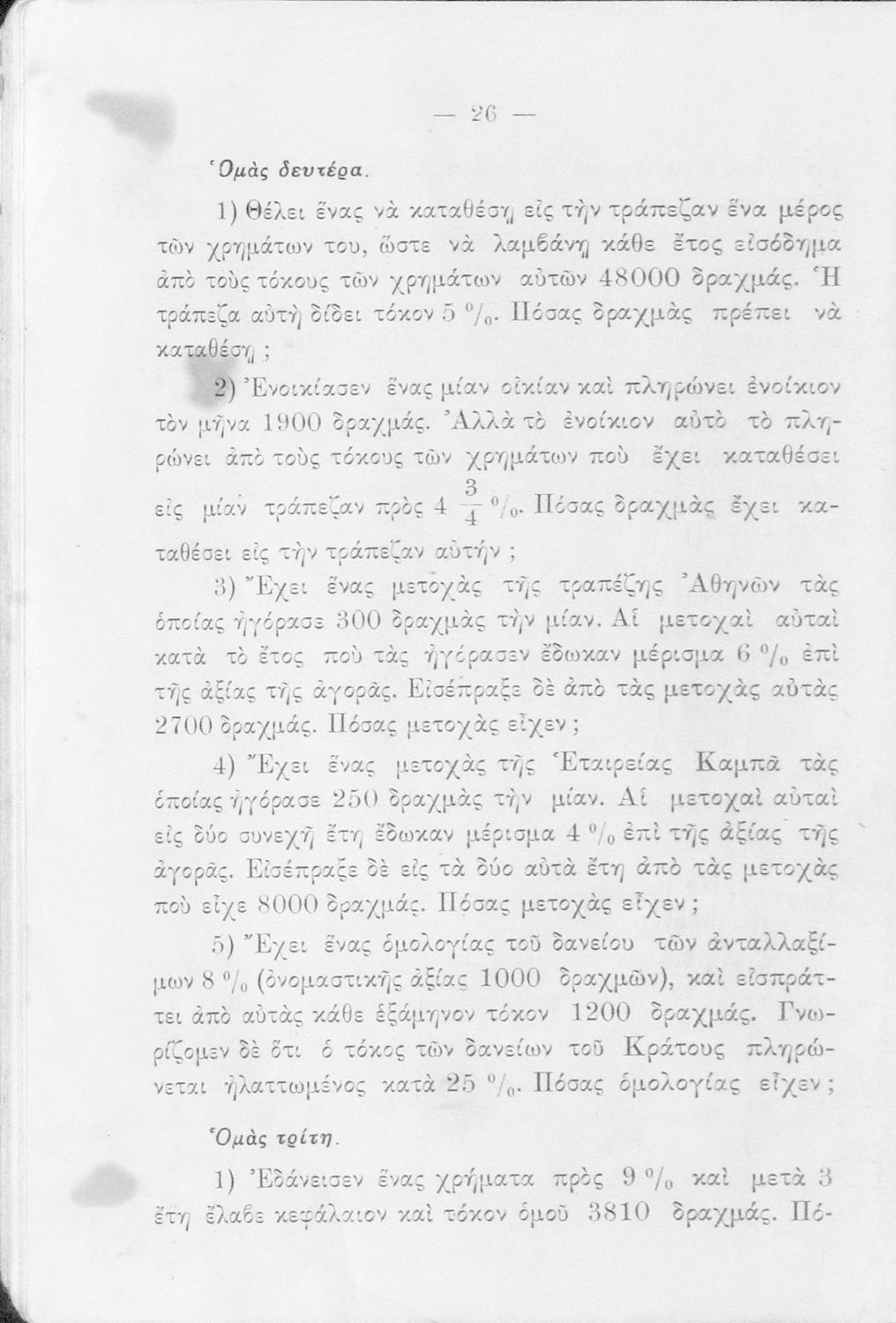 Βαθμίδα εκπαίδευσης: Πρωτοβάθμια Τάξη: ΣΤ' Δημοτικού Μάθημα: Μαθηματικά Γλώσσα: Δημοτική Παρουσίαση περιεχομένου: Μαθητικό βοήθημα Μαθηματικών ΣΤ΄ Δημοτικού που περιλαμβάνει αριθμητικά προβλήματα με έμφαση στη λογιστική εφαρμογή της αριθμητικής. |
