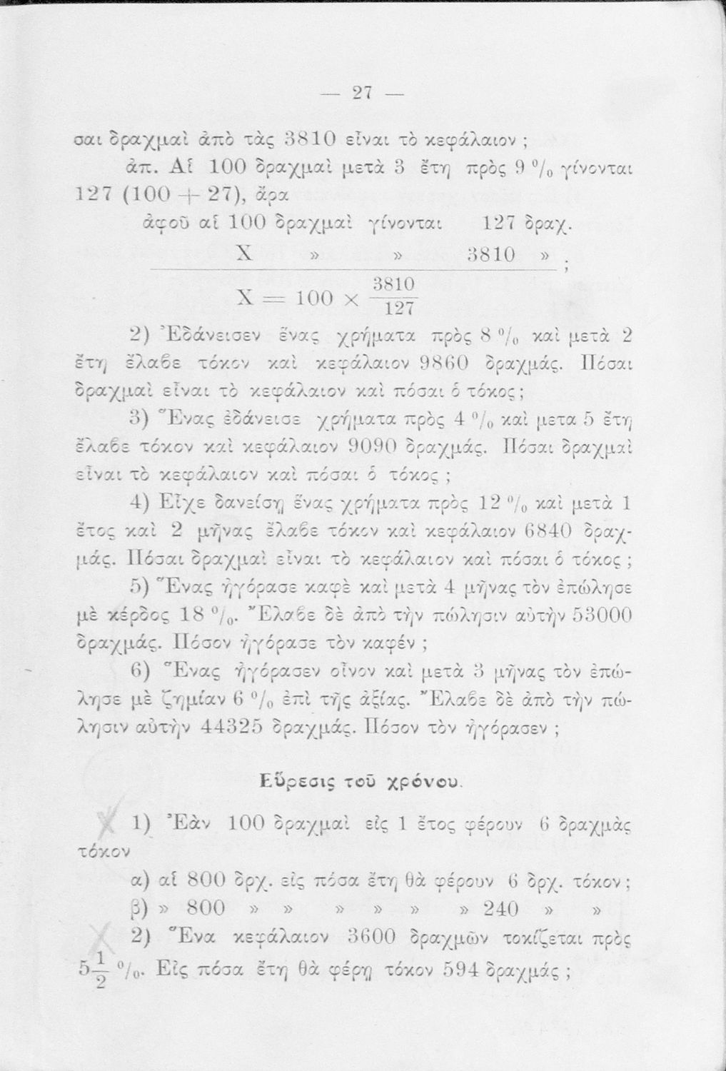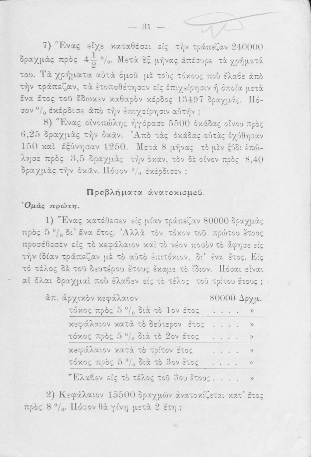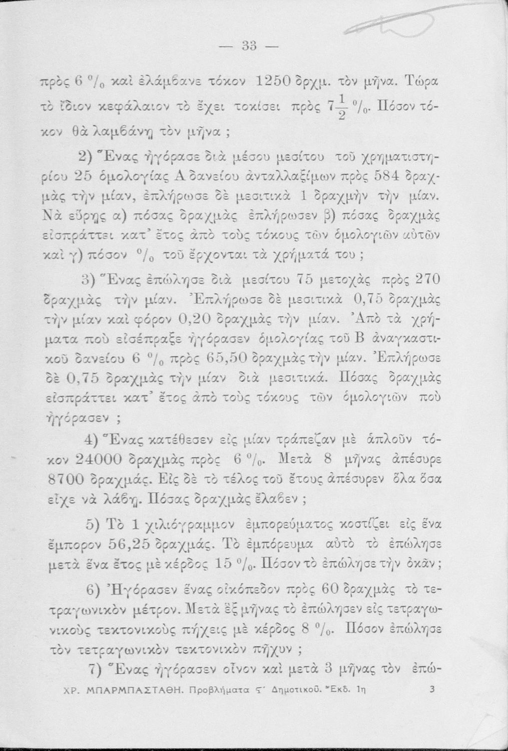 LDR 01130 2200217 4500 035 ## _a01-18550 040 ## _aΙνστιτούτο Εκπαιδευτικής Πολιτικής 041 ## _ael 100 ## _aΧρίστος Α. Μπαρμπαστάθης 110 ## _a18550 245 0# _aΑριθμητικά προβλήματα εγκεκριμένα προς χρήσιν των μαθητών της ΣΤ΄ τάξεως των Δημοτικών Σχολείων 250 ## _a1η Έκδοση 260 ## _aΑθήνα _bΙωάννης Δ. Κολλάρος _c1934 300 ## _a62 _c19 520 ## _aΜαθητικό βοήθημα Μαθηματικών ΣΤ΄ Δημοτικού που περιλαμβάνει αριθμητικά προβλήματα με έμφαση στη λογιστική εφαρμογή της αριθμητικής. 521 ## _aΣΤ' Δημοτικού 522 ## _aΕλλάδα 546 ## _aΔημοτική 563 ## _aΜαλακό Εξώφυλλο 583 ## _a51231/51232/20-8-1934 _c1934 650 #4 _aΑπλή μέθοδος των τριών _aΕπιτόκιο _aΜέσος όρος _aΤόκος