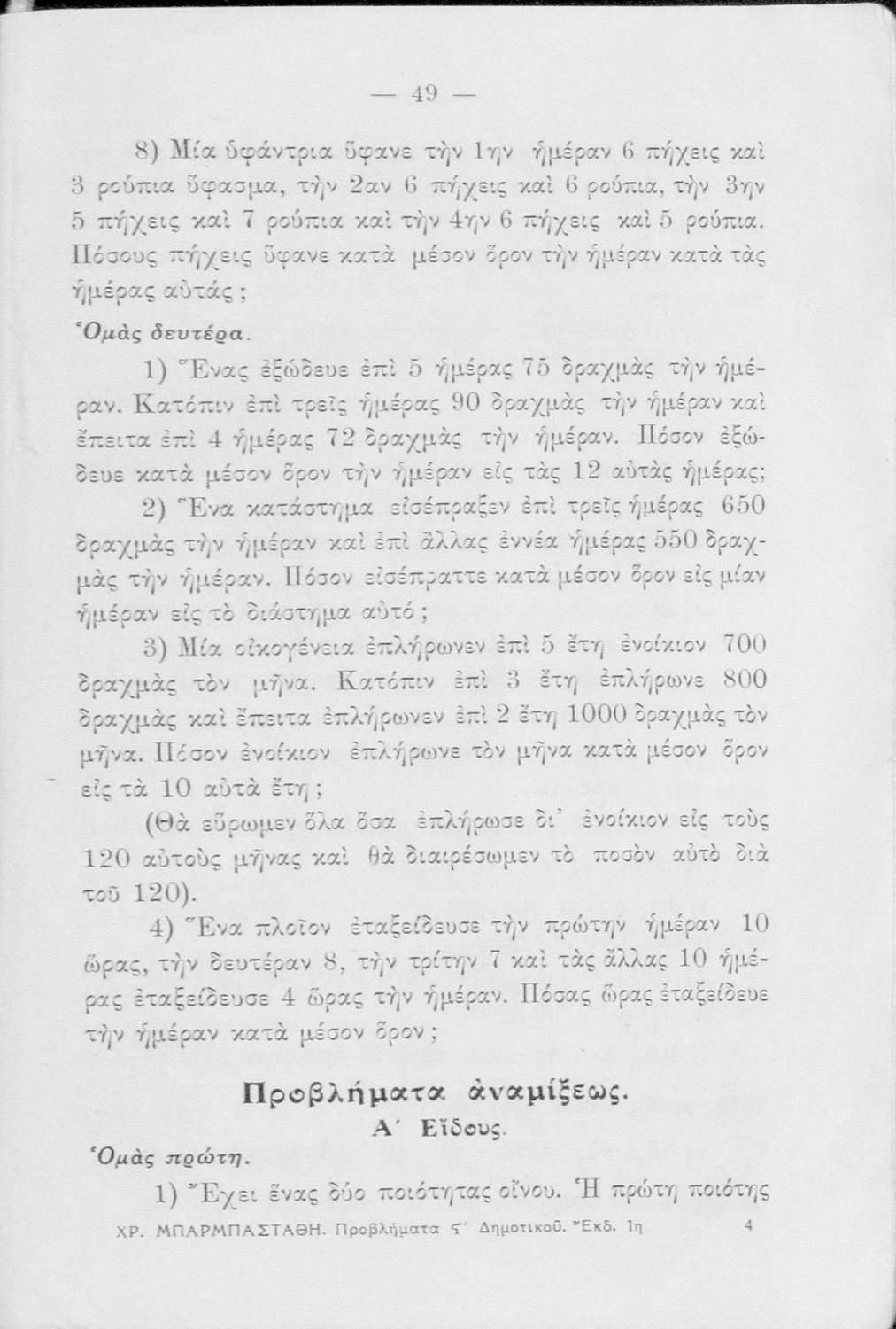 Τίτλος: Αριθμητικά προβλήματα εγκεκριμένα προς χρήσιν των μαθητών της ΣΤ΄ τάξεως των Δημοτικών Σχολείων