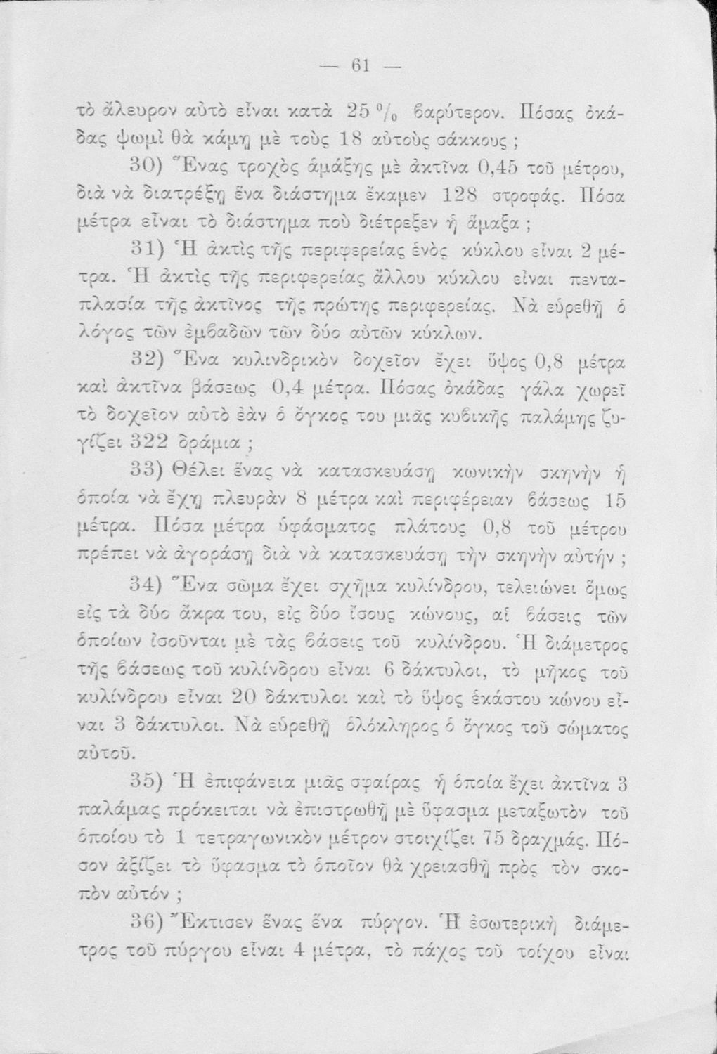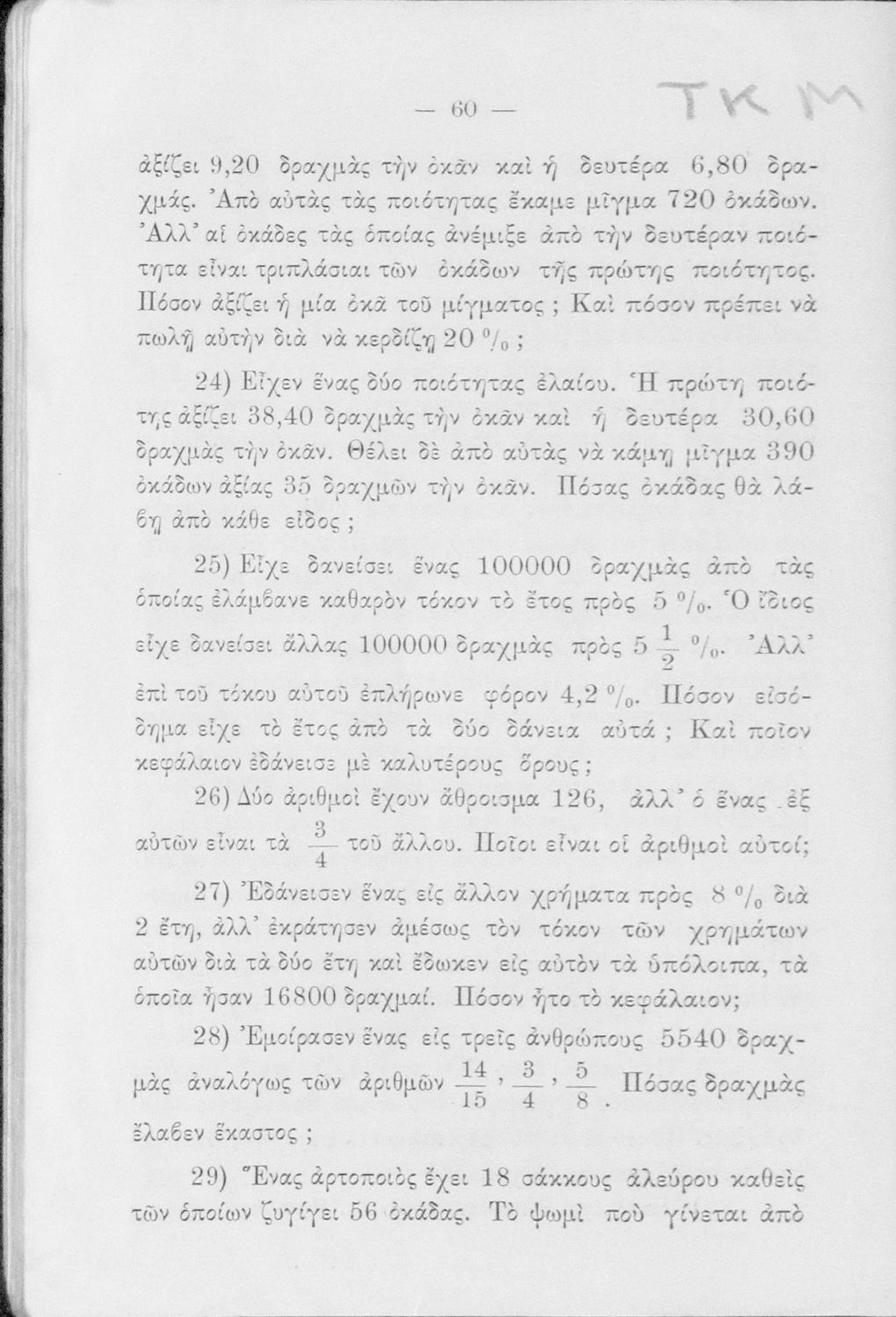 LDR 01130 2200217 4500 035 ## _a01-18550 040 ## _aΙνστιτούτο Εκπαιδευτικής Πολιτικής 041 ## _ael 100 ## _aΧρίστος Α. Μπαρμπαστάθης 110 ## _a18550 245 0# _aΑριθμητικά προβλήματα εγκεκριμένα προς χρήσιν των μαθητών της ΣΤ΄ τάξεως των Δημοτικών Σχολείων 250 ## _a1η Έκδοση 260 ## _aΑθήνα _bΙωάννης Δ. Κολλάρος _c1934 300 ## _a62 _c19 520 ## _aΜαθητικό βοήθημα Μαθηματικών ΣΤ΄ Δημοτικού που περιλαμβάνει αριθμητικά προβλήματα με έμφαση στη λογιστική εφαρμογή της αριθμητικής. 521 ## _aΣΤ' Δημοτικού 522 ## _aΕλλάδα 546 ## _aΔημοτική 563 ## _aΜαλακό Εξώφυλλο 583 ## _a51231/51232/20-8-1934 _c1934 650 #4 _aΑπλή μέθοδος των τριών _aΕπιτόκιο _aΜέσος όρος _aΤόκος