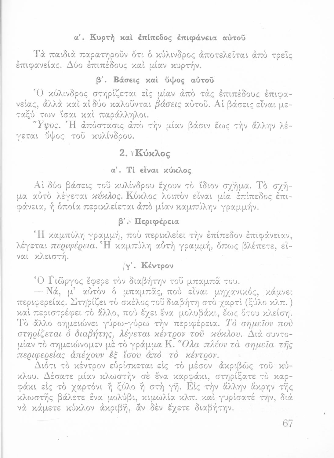 Σχολικό εγχειρίδιο Γεωμετρίας για τις Α΄, Β΄, Γ΄ Γυμνασίου που είναι χωρισμένο σε Επιπεδομετρία και Στερεομετρία και περιλαμβάνει θεωρία και ασκήσεις.