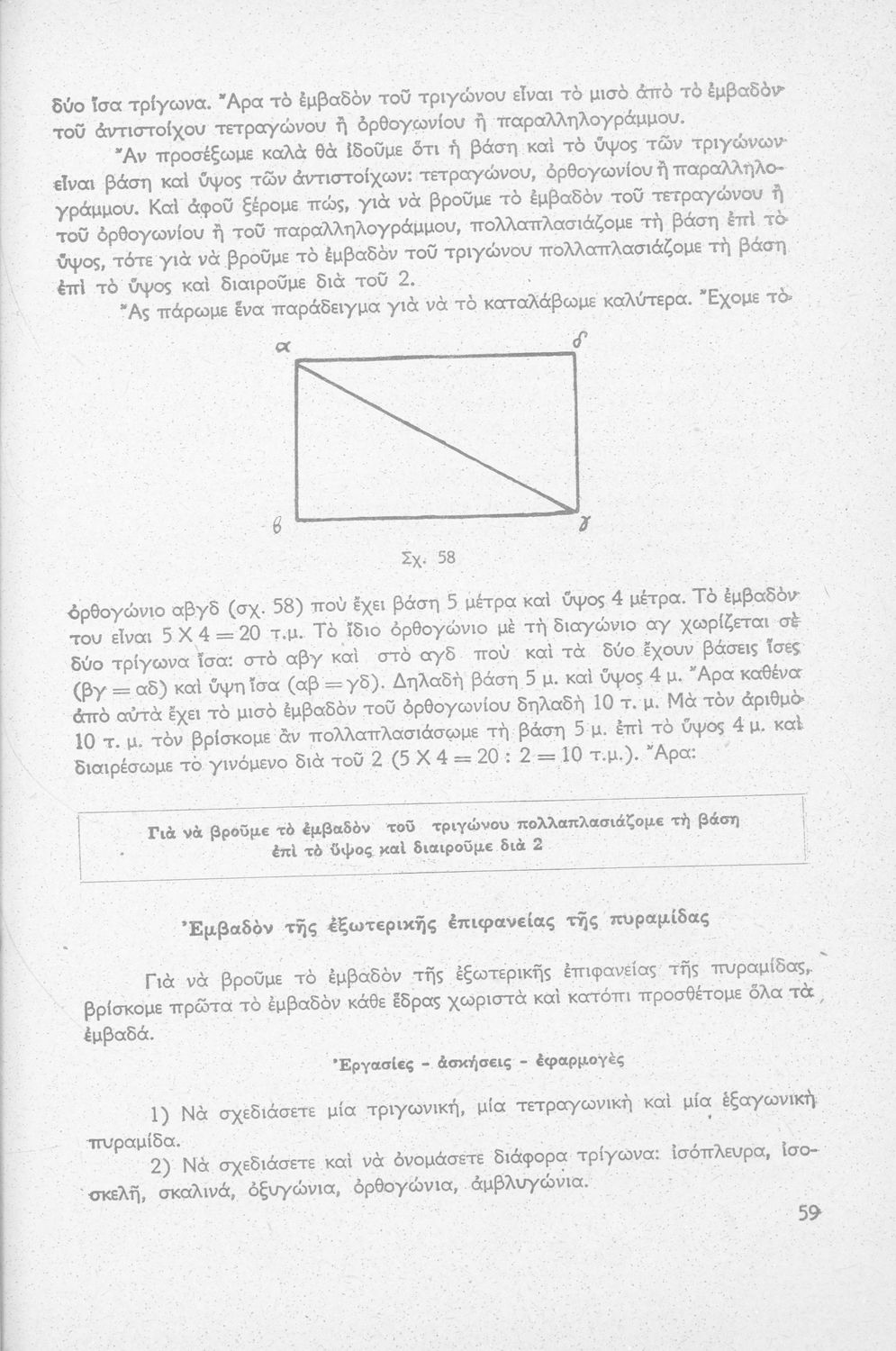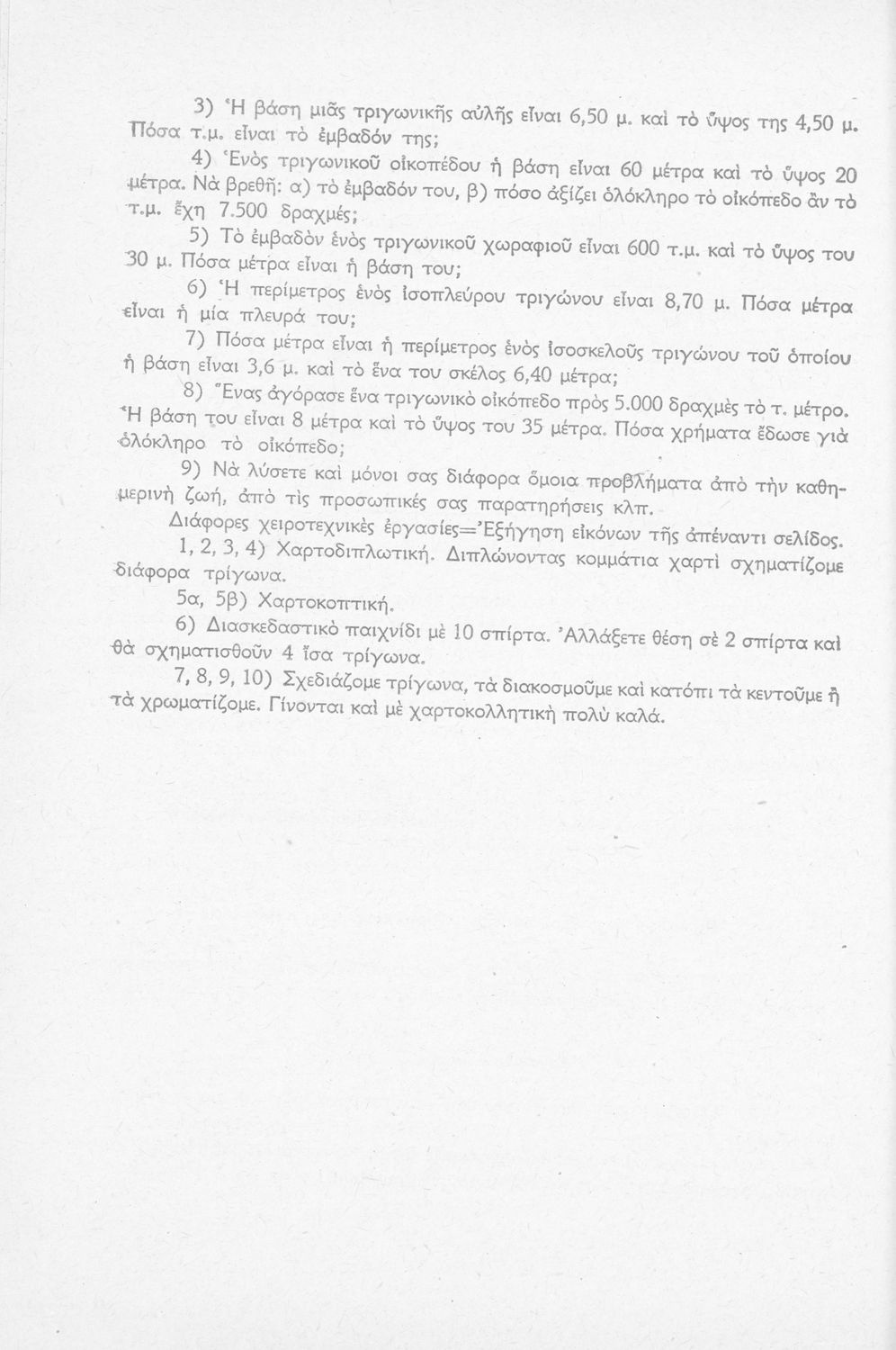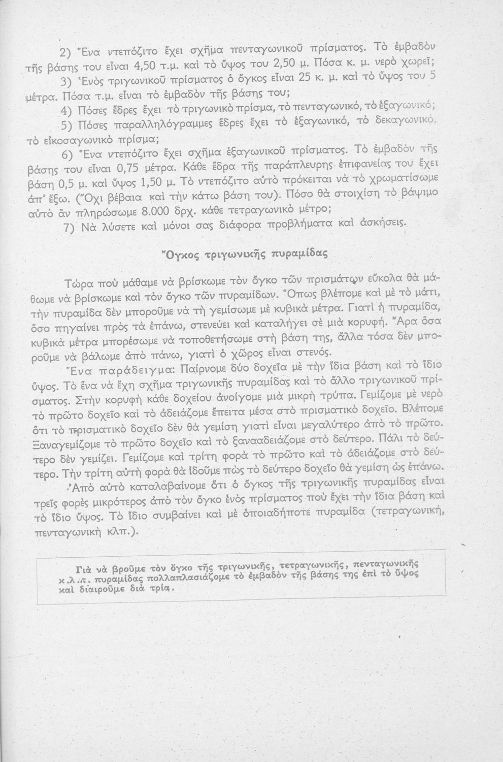 Μαθητικό βοήθημα Γεωμετρίας για τις Ε΄ και ΣΤ΄ Δημοτικού που περιλαμβάνει εικόνες, σχεδιαγράμματα και ασκήσεις. Περιέχει πίνακα με τα ειδικά βάρη διαφόρων σωμάτων.
