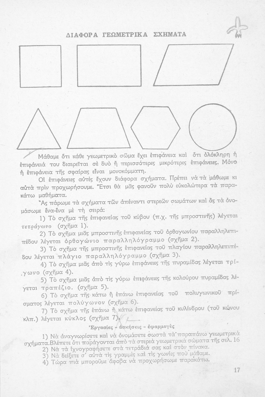 Μαθητικό βοήθημα Γεωμετρίας για την Ε΄ και ΣΤ΄ Δημοτικού που περιέχει εικόνες, σχεδιαγράμματα και ασκήσεις.