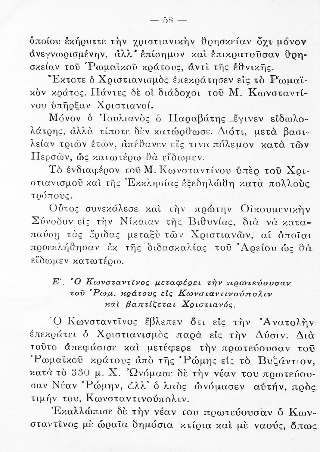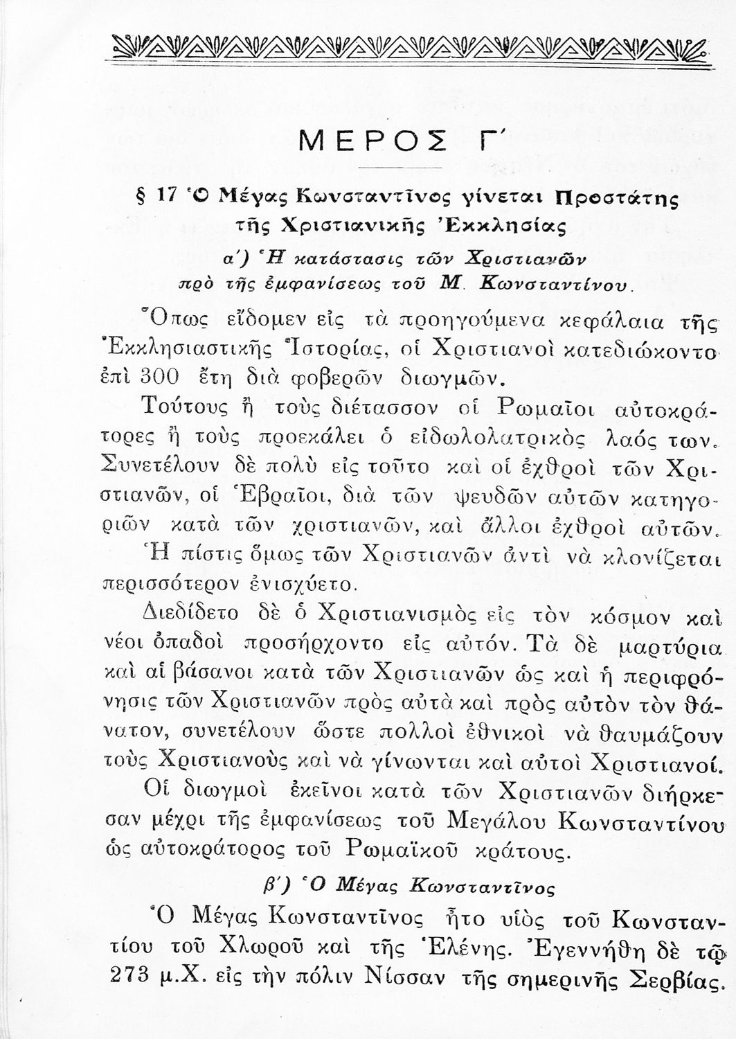 Βαθμίδα εκπαίδευσης: Πρωτοβάθμια Τάξη: Ε' Δημοτικού Μάθημα: Θρησκευτικά Γλώσσα: Καθαρεύουσα Παρουσίαση περιεχομένου: Σχολικό εγχειρίδιο Θρησκευτικών Ε΄ Δημοτικού που περιέχει την ιστορία της Ορθόδοξης Εκκλησίας από την ίδρυσή της μέχρι την δημιουργία της Εκκλησίας της Ελλάδας. |