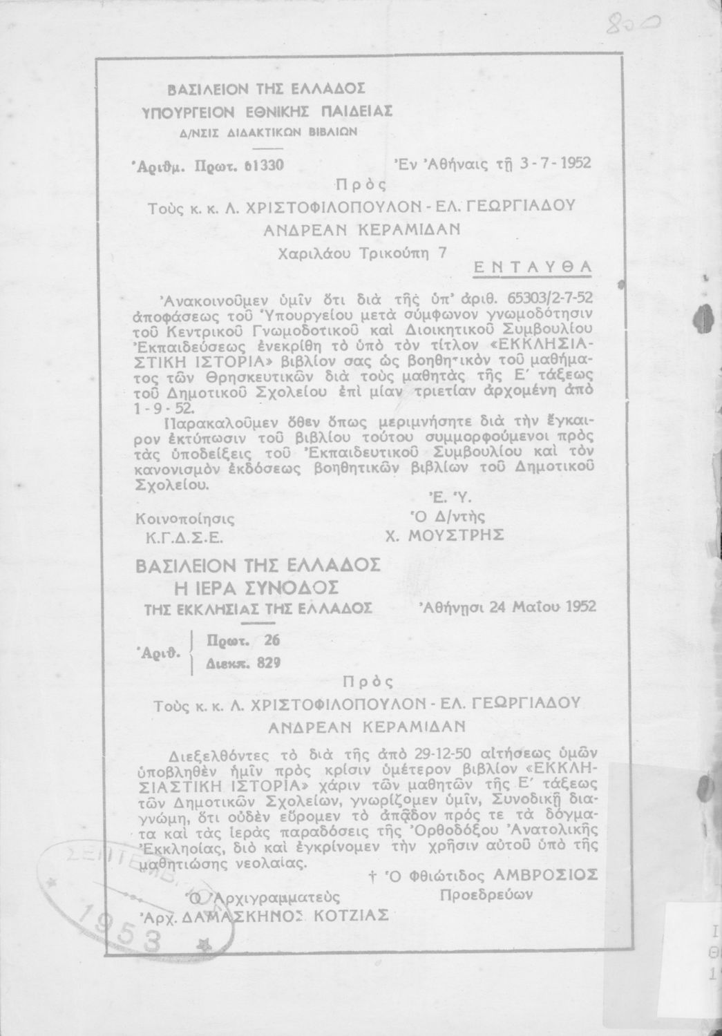 Τίτλος: Εκκλησιαστική Ιστορία δια τους μαθητάς της Ε΄ τάξεως (και ΣΤ΄ συνδιδασκομένης) των Δημοτικών Σχολείων