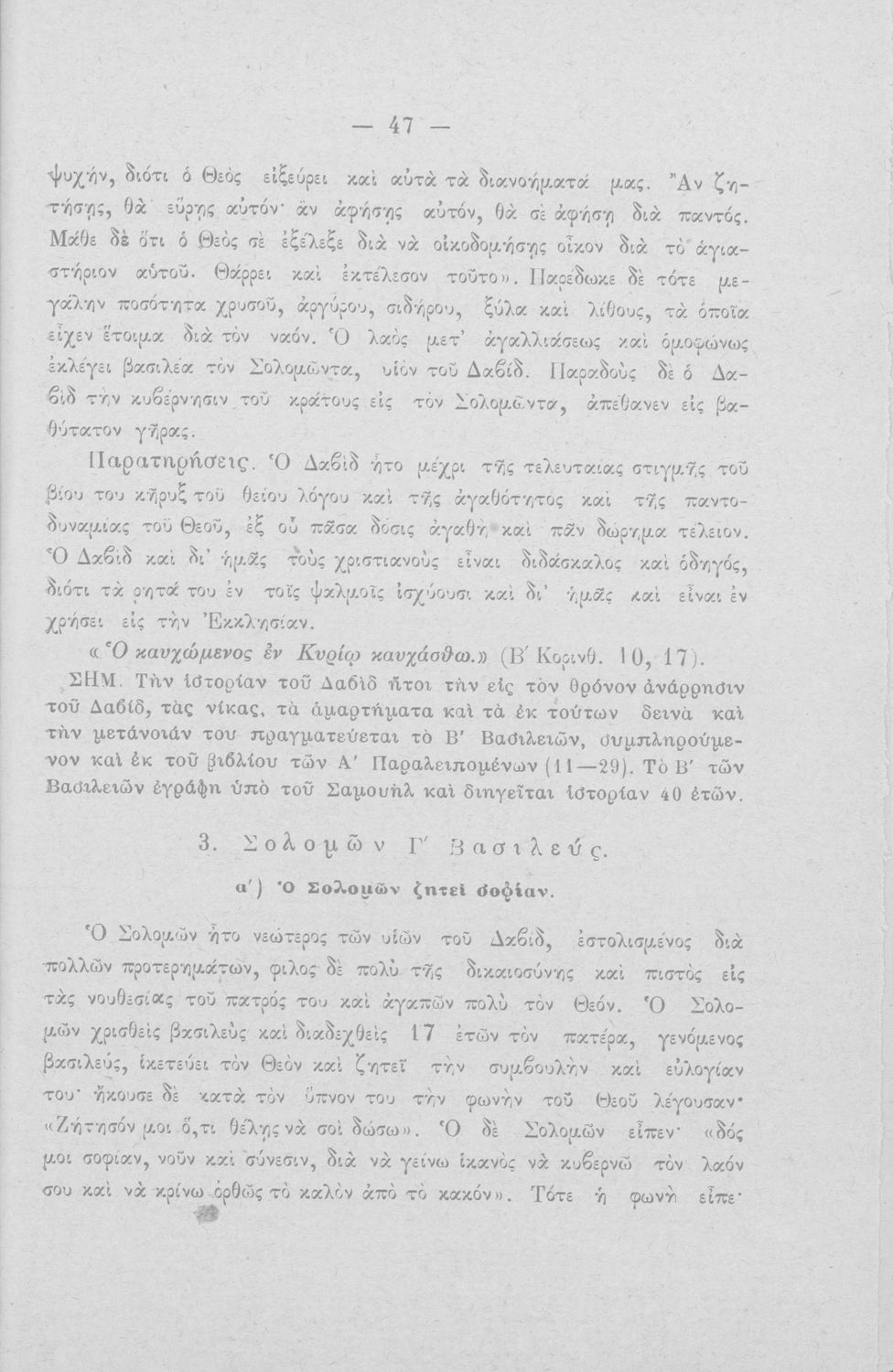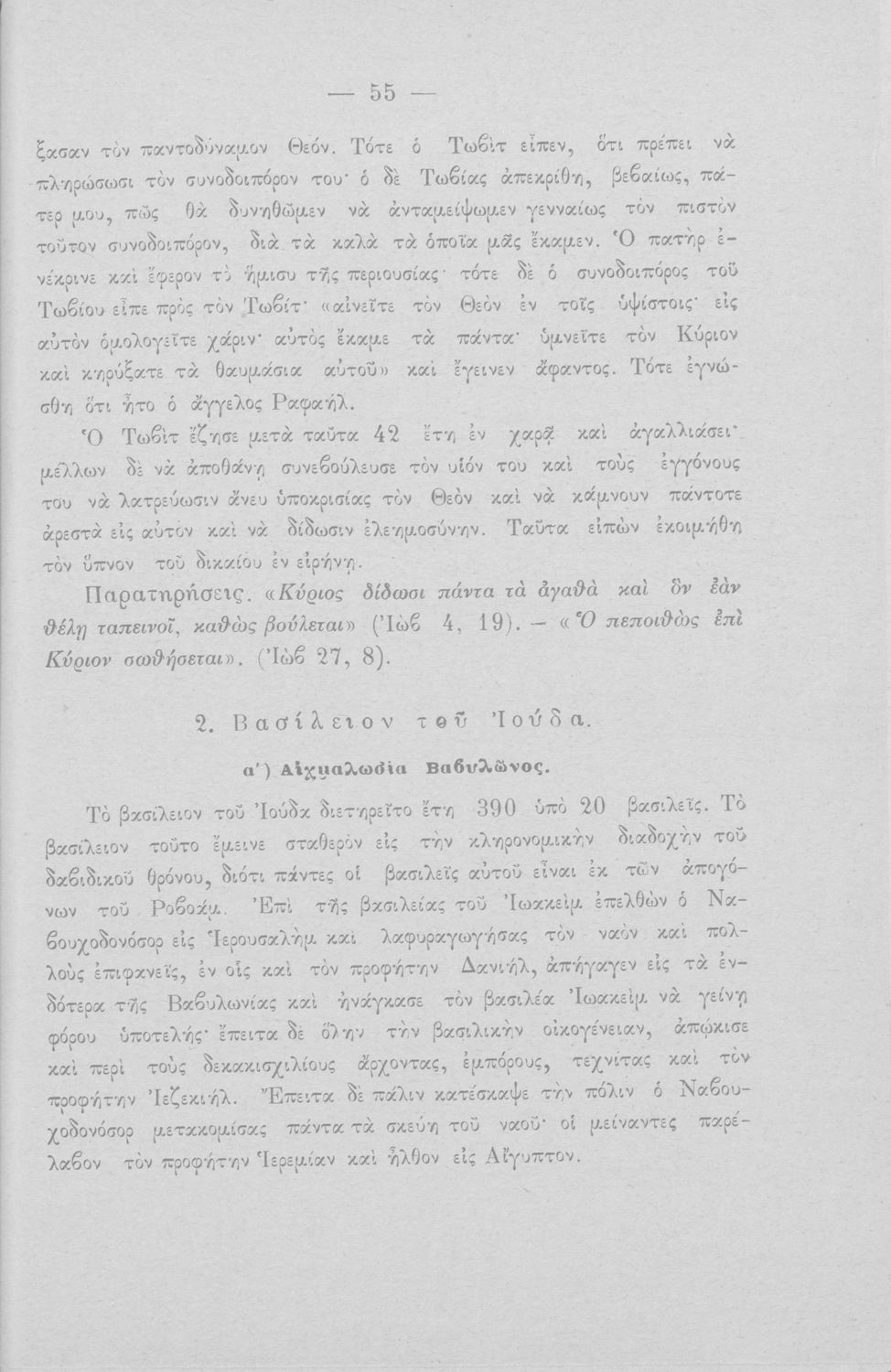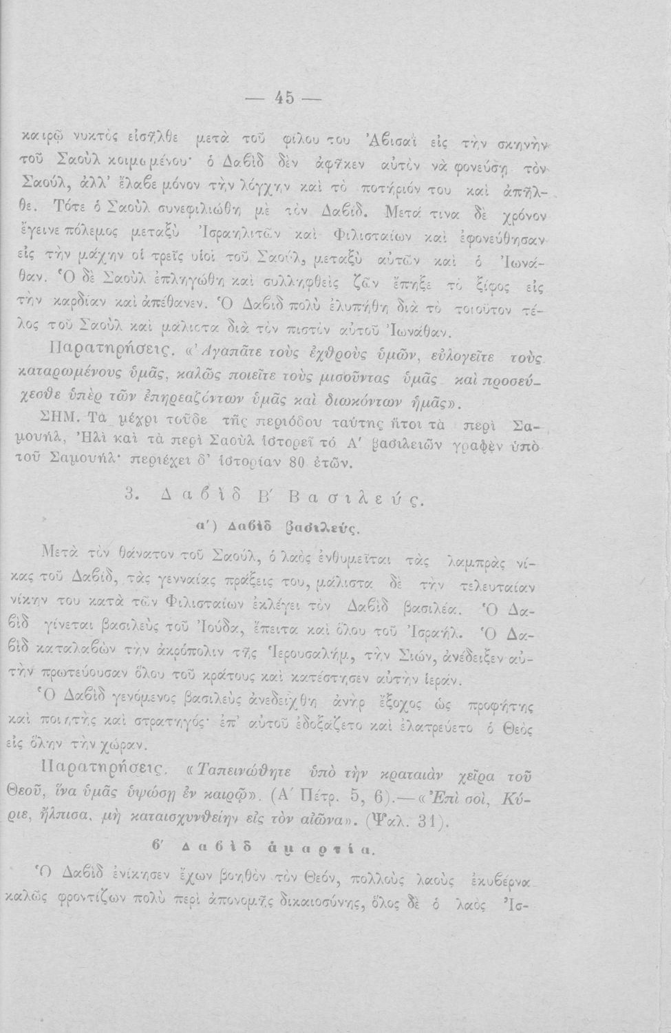 Σχολικό εγχειρίδιο Θρησκευτικών Δημοτικού που συνιστά μία εξιστόρηση της Παλαιάς Διαθήκης από τη δημιουργία του κόσμου ως τους Μακκαβαίους. Περιέχει και ποιήματα θρησκευτικού περιεχομένου.