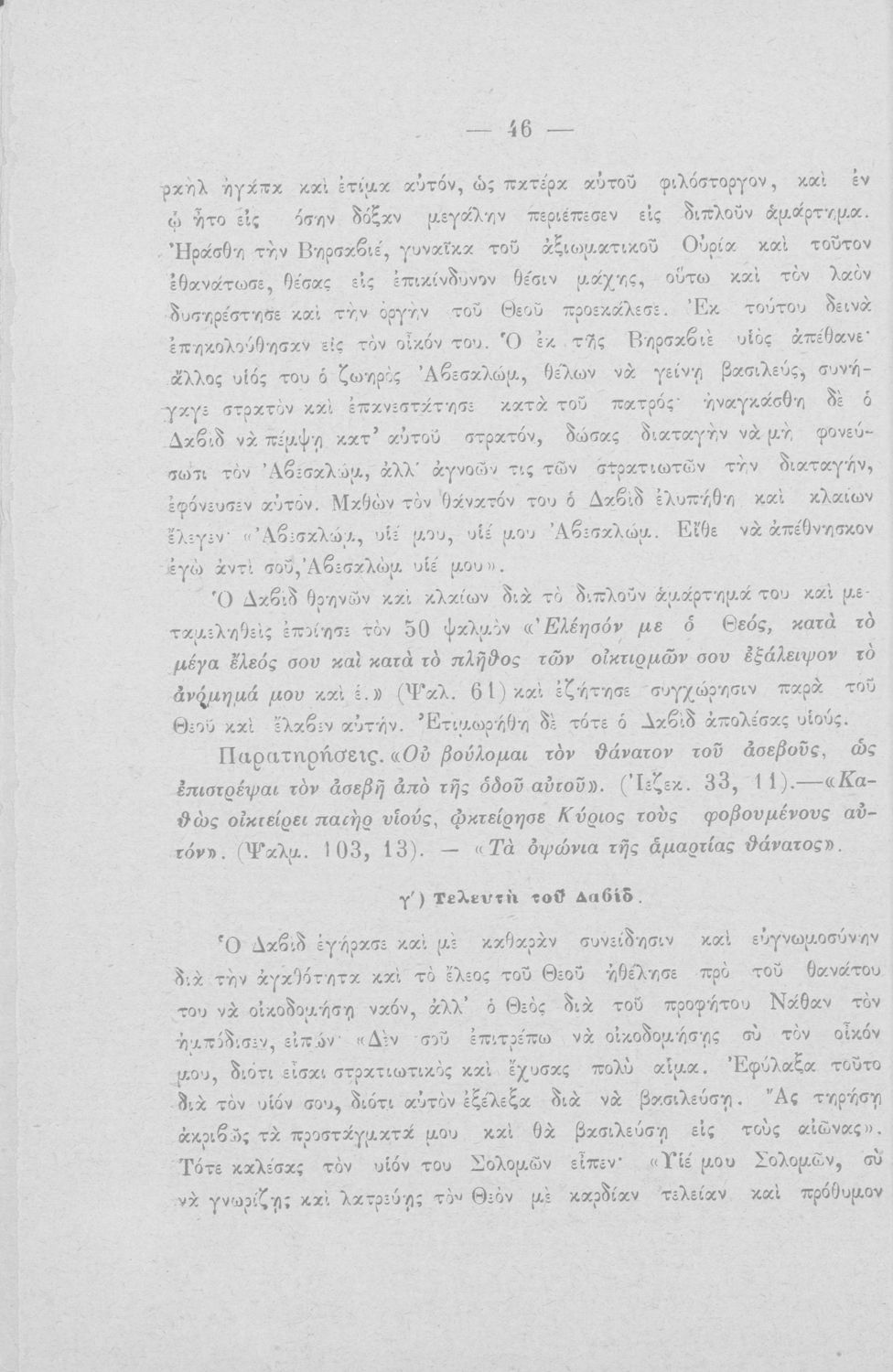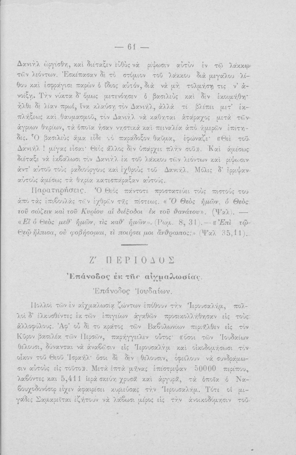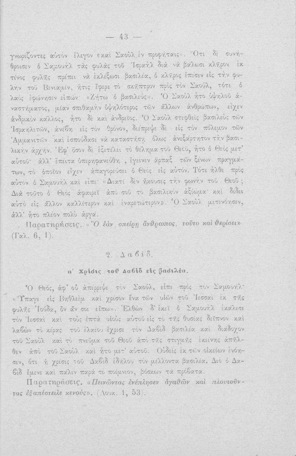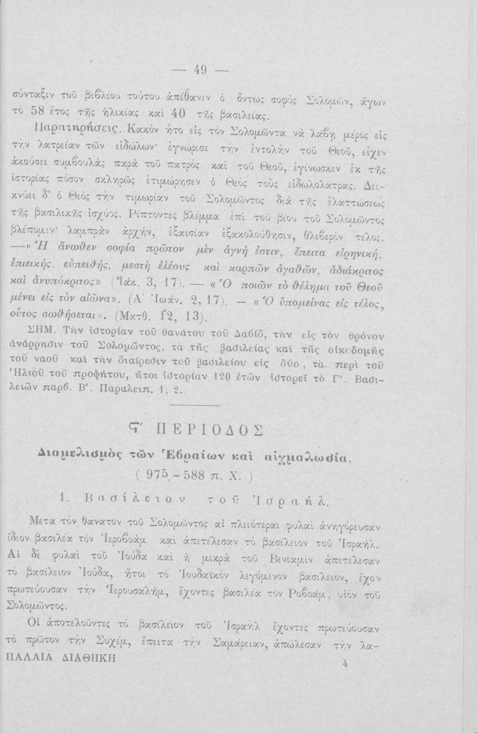Σχολικό εγχειρίδιο Θρησκευτικών Δημοτικού που συνιστά μία εξιστόρηση της Παλαιάς Διαθήκης από τη δημιουργία του κόσμου ως τους Μακκαβαίους. Περιέχει και ποιήματα θρησκευτικού περιεχομένου.