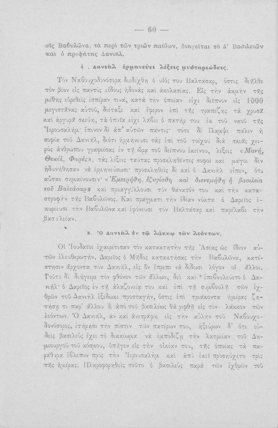 Βαθμίδα εκπαίδευσης: Πρωτοβάθμια Μάθημα: Θρησκευτικά Γλώσσα: Καθαρεύουσα Παρουσίαση περιεχομένου: Σχολικό εγχειρίδιο Θρησκευτικών Δημοτικού που συνιστά μία εξιστόρηση της Παλαιάς Διαθήκης από τη δημιουργία του κόσμου ως τους Μακκαβαίους. Περιέχει και ποιήματα θρησκευτικού περιεχομένου. |