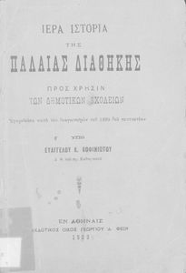 Κωδικός αναγνώρισης: 01-18561 Τίτλος: Ιερά Ιστορία της Παλαιάς Διαθήκης προς χρήσιν των Δημοτικών Σχολείων Συγγραφέας: Ευάγγελος Κ. Κοφινιώτης Μέγεθος και υπόστρωμα: Σχολικό εγχειρίδιο, 21εκ., μαλακό εξώφυλλο, 71 σελίδες. |