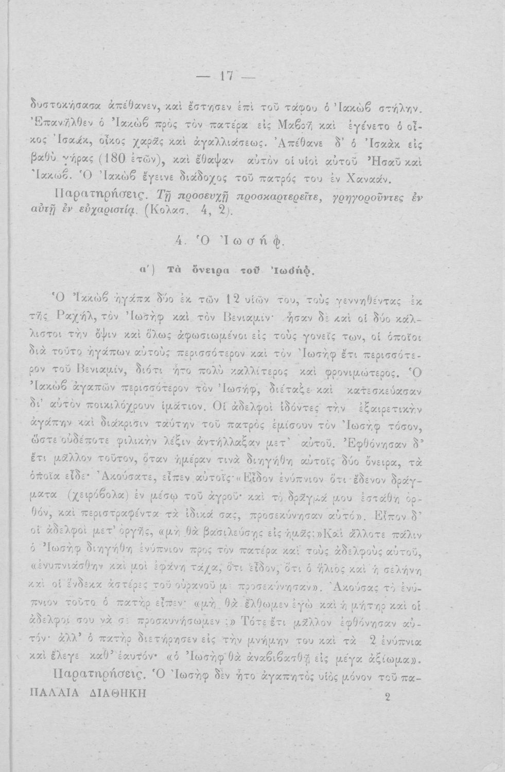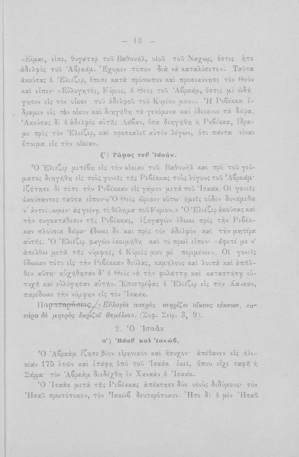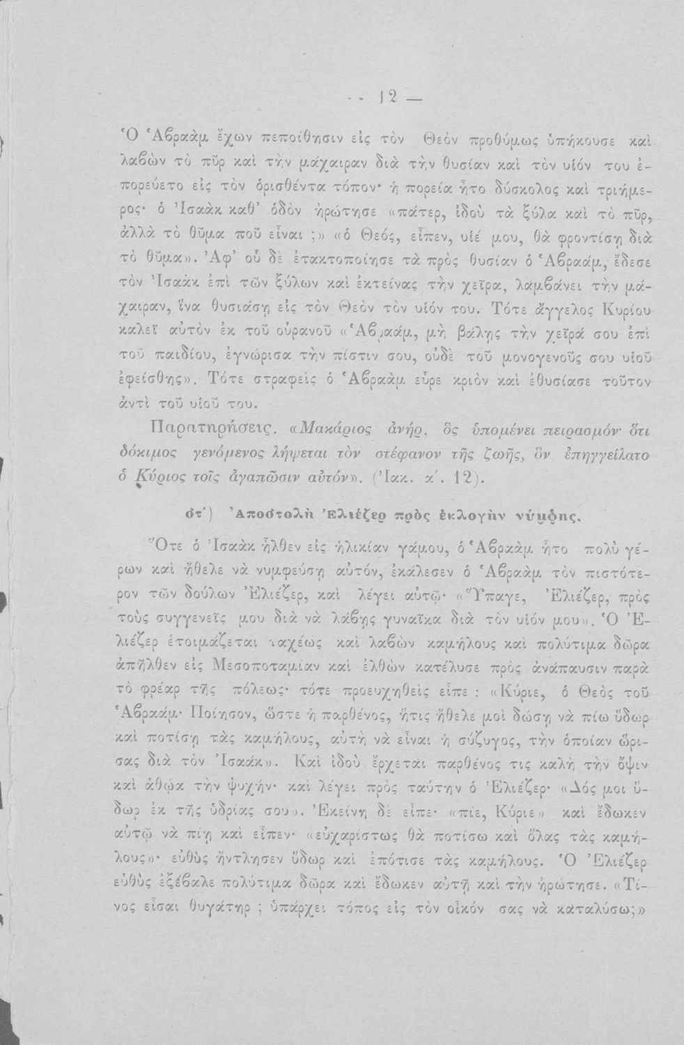 Σχολικό εγχειρίδιο Θρησκευτικών Δημοτικού που συνιστά μία εξιστόρηση της Παλαιάς Διαθήκης από τη δημιουργία του κόσμου ως τους Μακκαβαίους. Περιέχει και ποιήματα θρησκευτικού περιεχομένου.