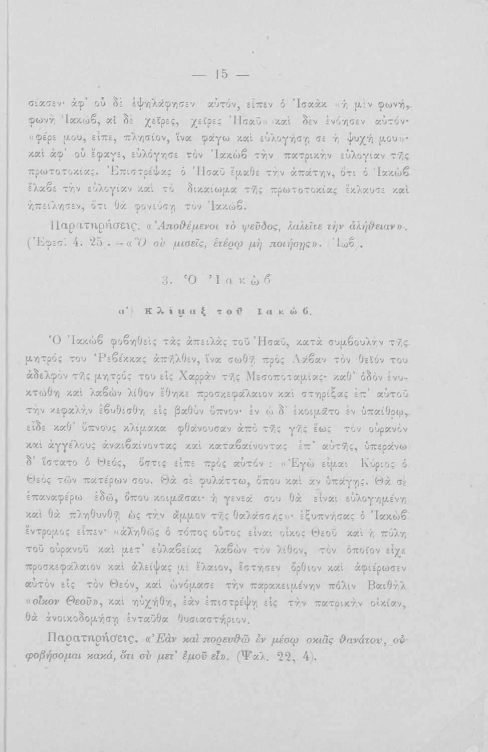 Βαθμίδα εκπαίδευσης: Πρωτοβάθμια Μάθημα: Θρησκευτικά Γλώσσα: Καθαρεύουσα Παρουσίαση περιεχομένου: Σχολικό εγχειρίδιο Θρησκευτικών Δημοτικού που συνιστά μία εξιστόρηση της Παλαιάς Διαθήκης από τη δημιουργία του κόσμου ως τους Μακκαβαίους. Περιέχει και ποιήματα θρησκευτικού περιεχομένου. |