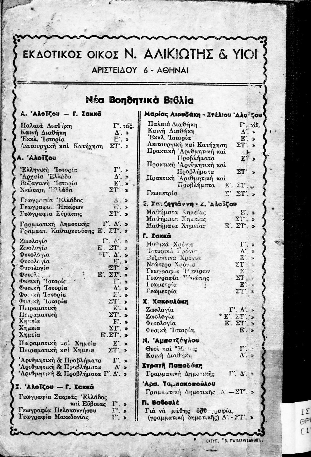 Εκδότης: Ν. Αλικιώτης