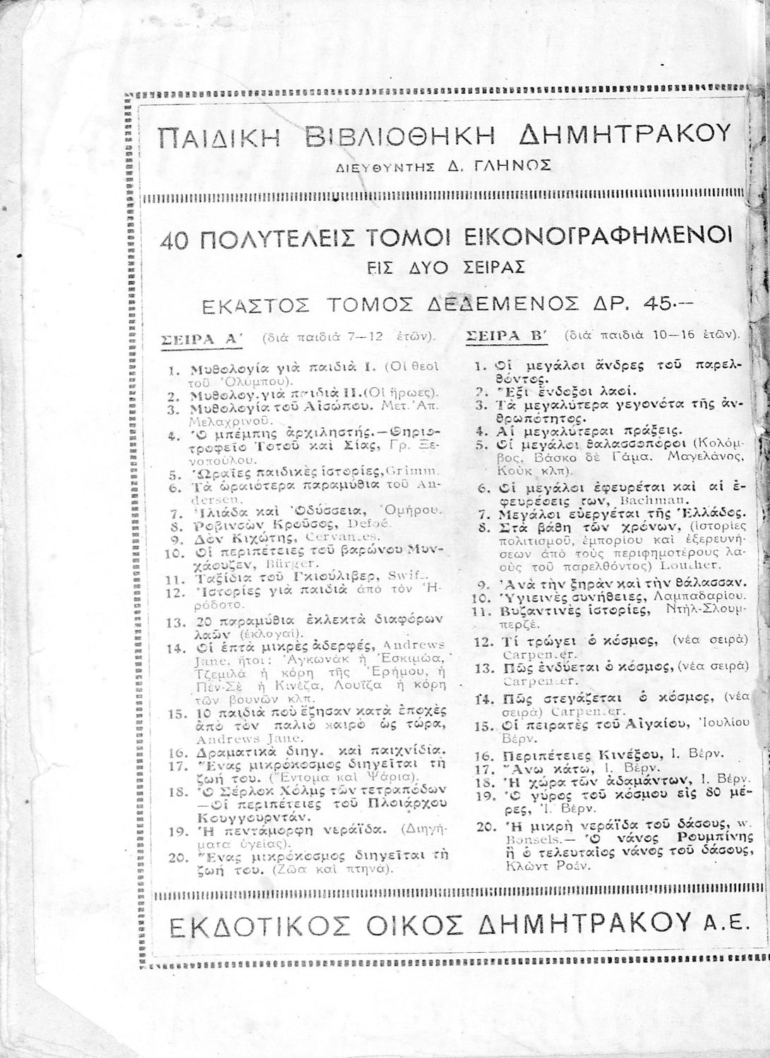 Εκδότης: Πέτρος Δημητράκος Έτος έκδοσης: 1935 Τόπος έκδοσης: Αθήνα |