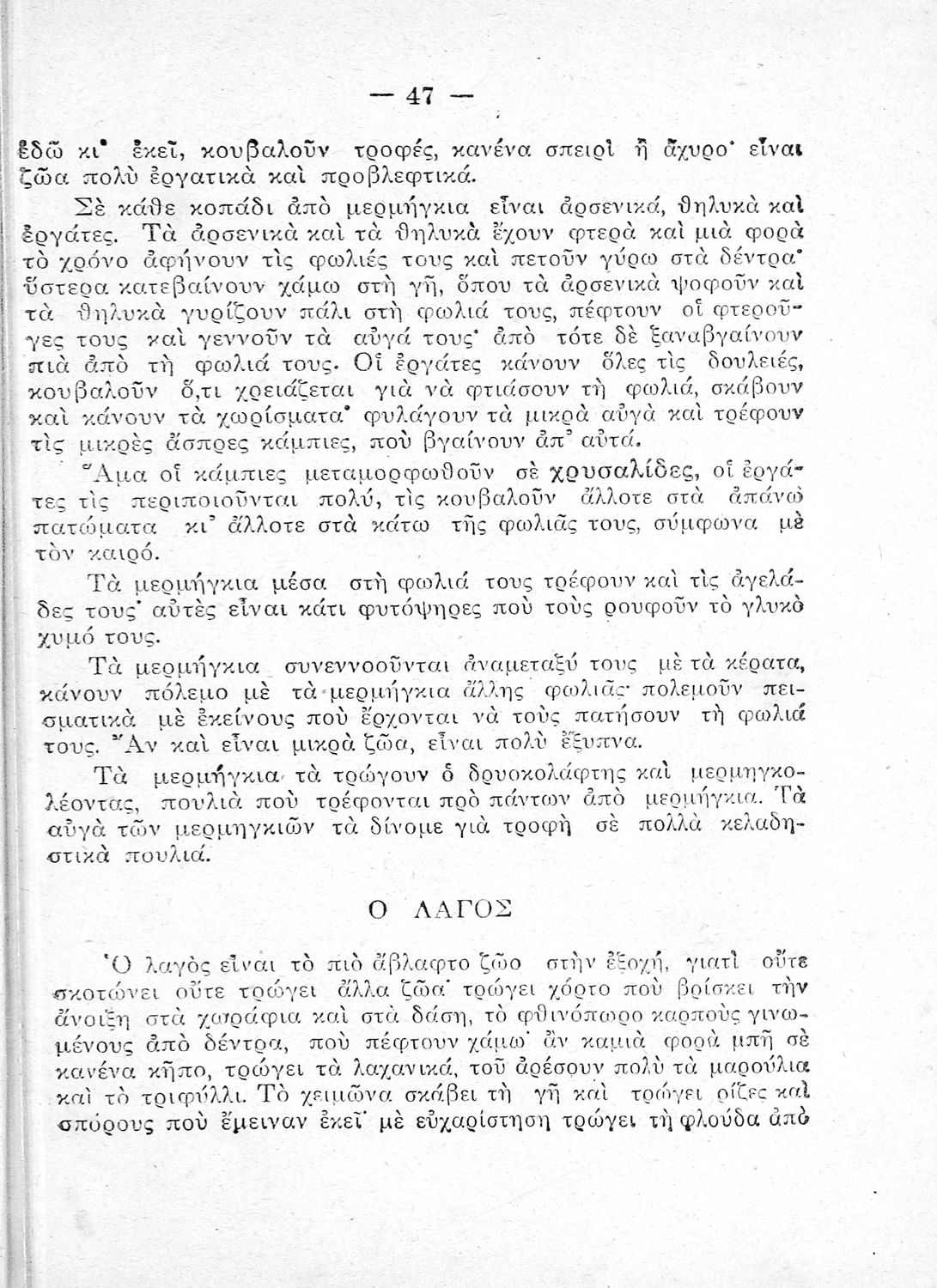 Σχετιζόμενοι όροι:  θηλαστικά, πουλιά, έντομα,