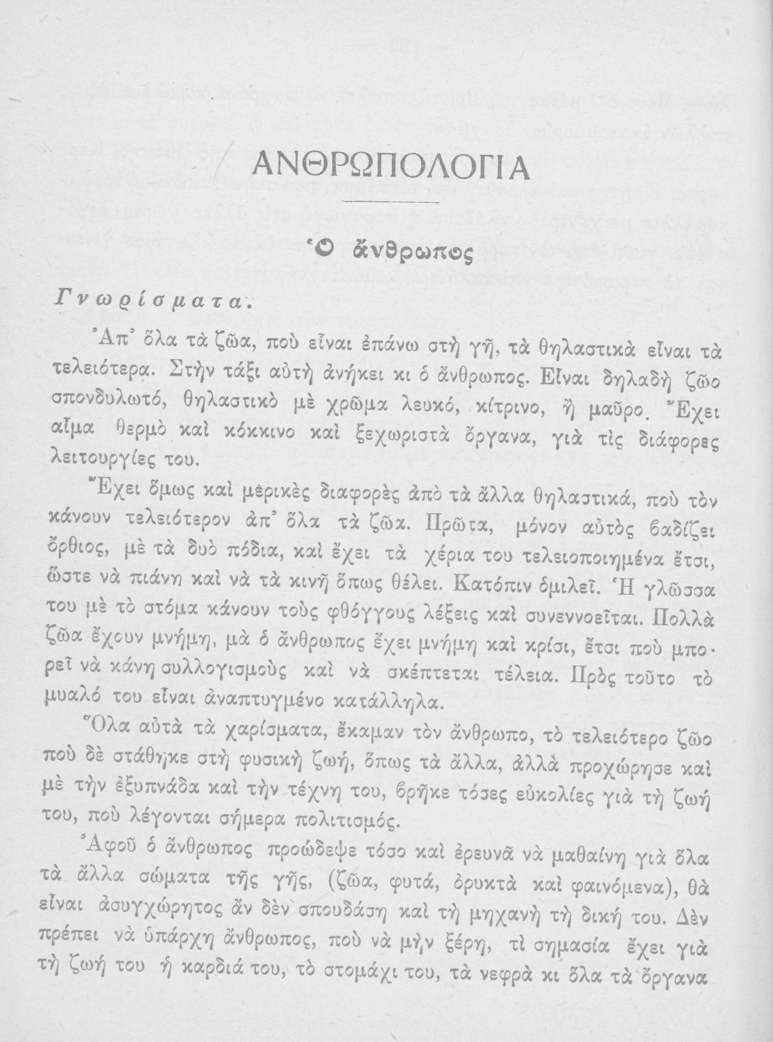 Φυτολογία, ζωολογία, ανθρωπολογία Φυσική ιστορία ΣΤ΄ Δημοτικού