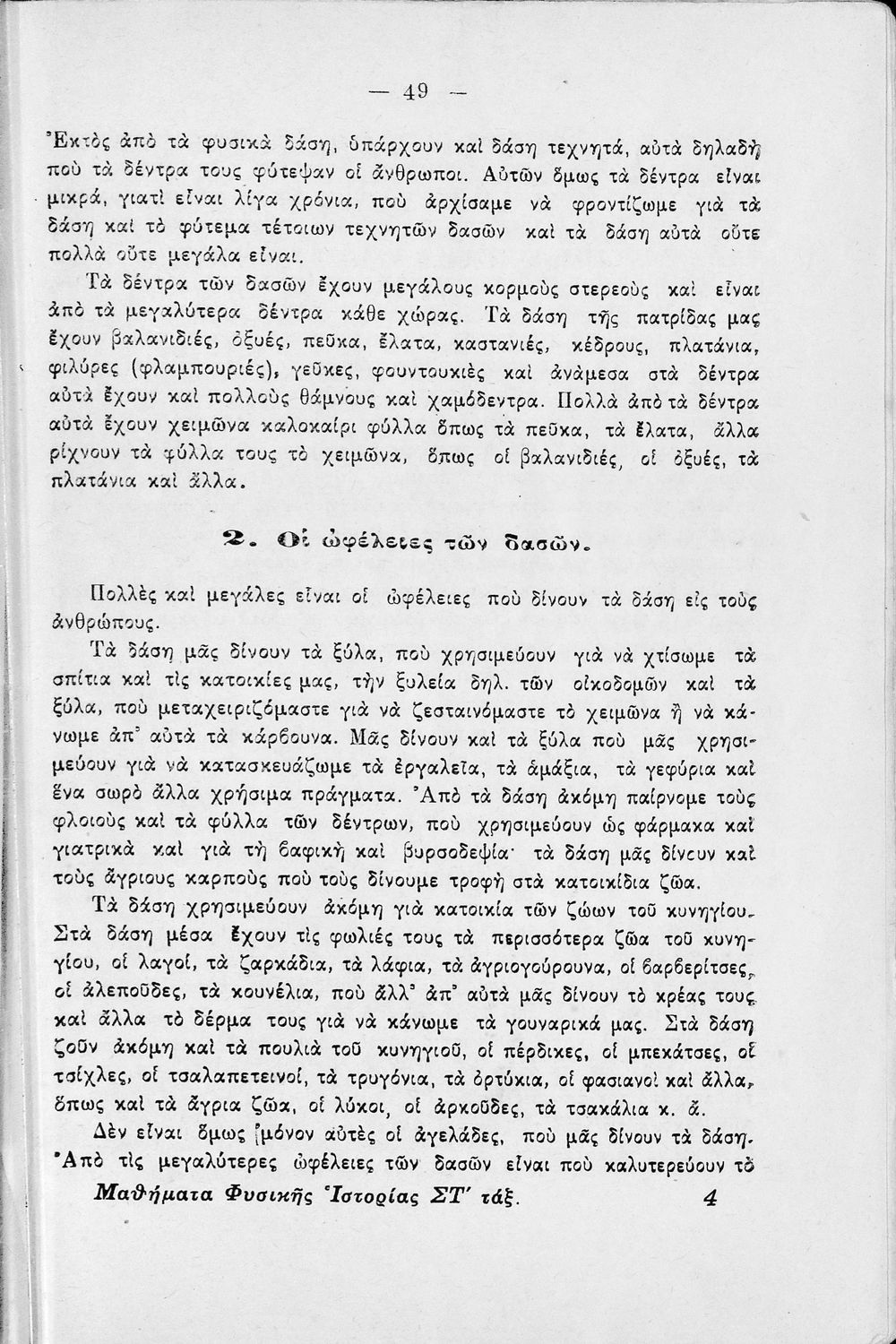 Μαθητικό βοήθημα Φυσικής Ιστορίας Δημοτικού που περιέχει στοιχεία φυτολογίας, ανθρωπολογίας, ζωολογίας και εξετάζει την αλληλεξάρτηση ζώων και φυτών.