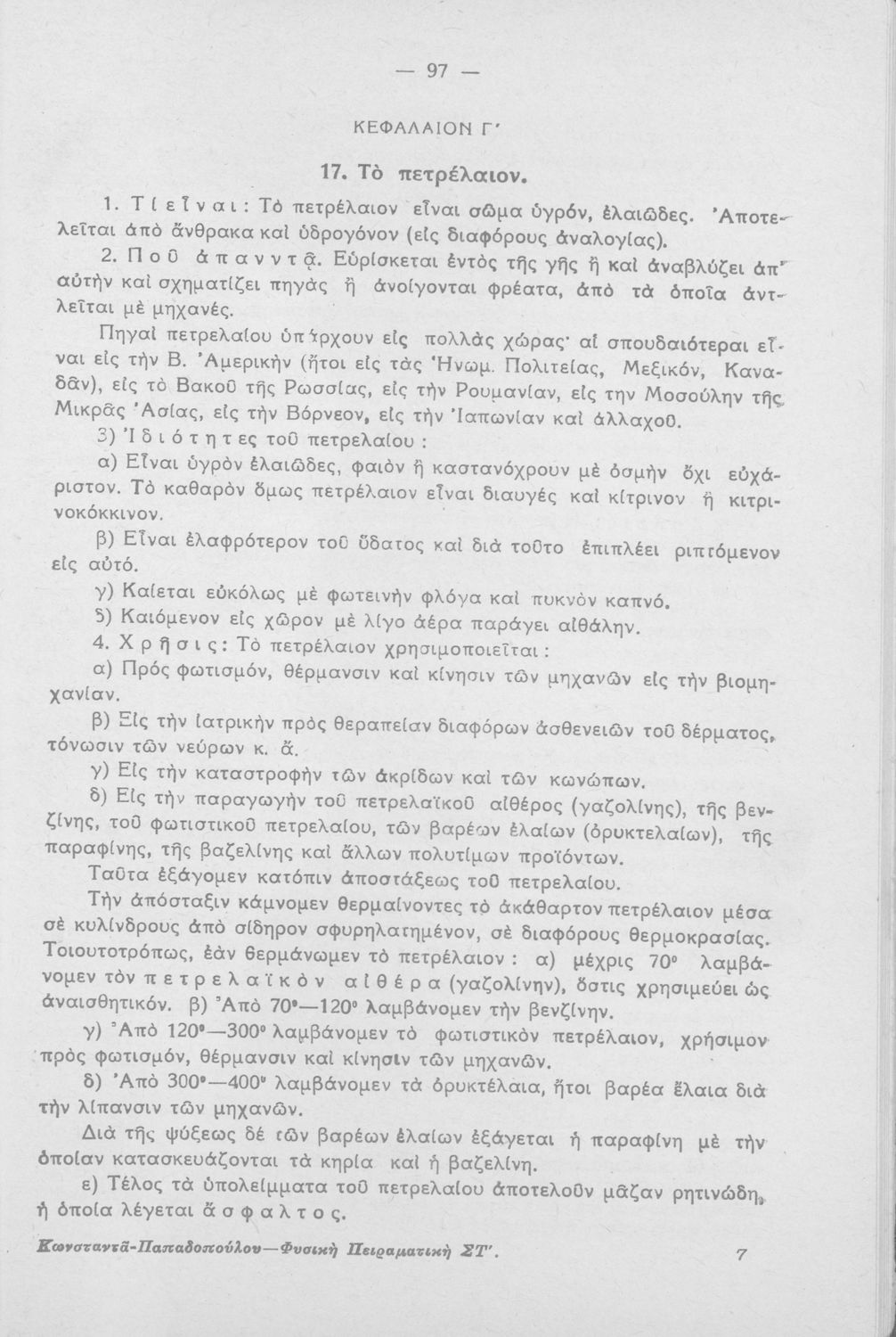 Σχολικό εγχειρίδιο Φυσικής Πειραματικής ΣΤ΄ Δημοτικού που εστιάζει στα φυσικά φαινόμενα (ακουστική, οπτική, μαγνητισμός και ηλεκτρισμός) και στα χημικά φαινόμενα (είδη του άνθρακα, παραγωγή πίσσας, ναφθαλίνης,