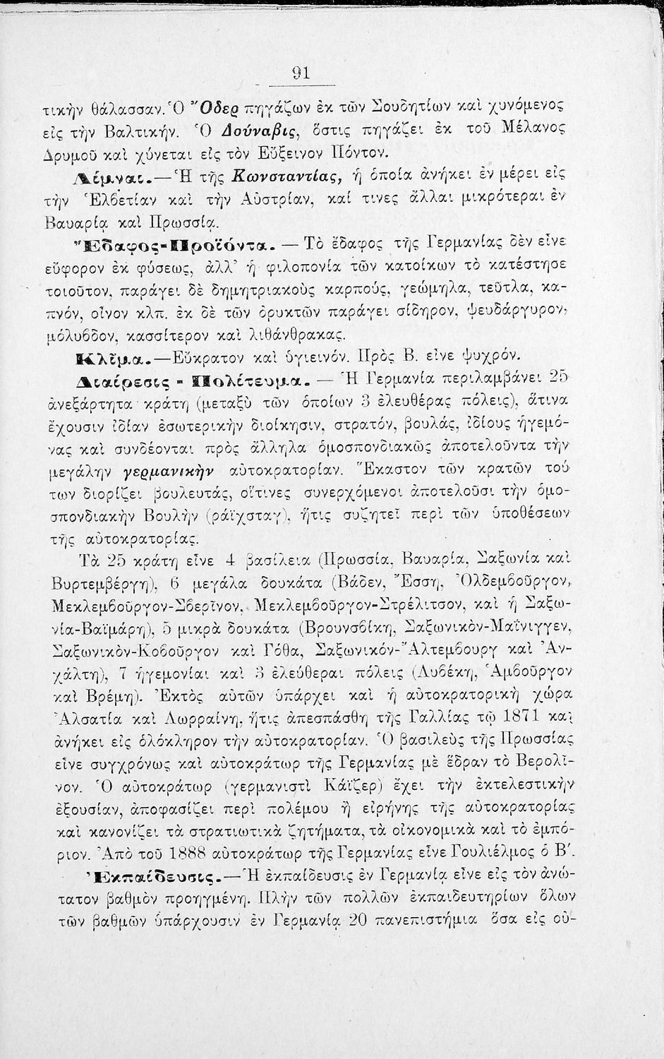 Σχολικό εγχειρίδιο Γεωγραφίας για τις Δ΄, Ε΄, ΣΤ΄ Ζ΄ Αστικών Σχολείων και Παρθεναγωγείων που περιλαμβάνει εισαγωγή στη φυσική, πολιτική και οικονομική γεωγραφία και παρουσιάζει χώρες από τις πέντε ηπείρους. ...