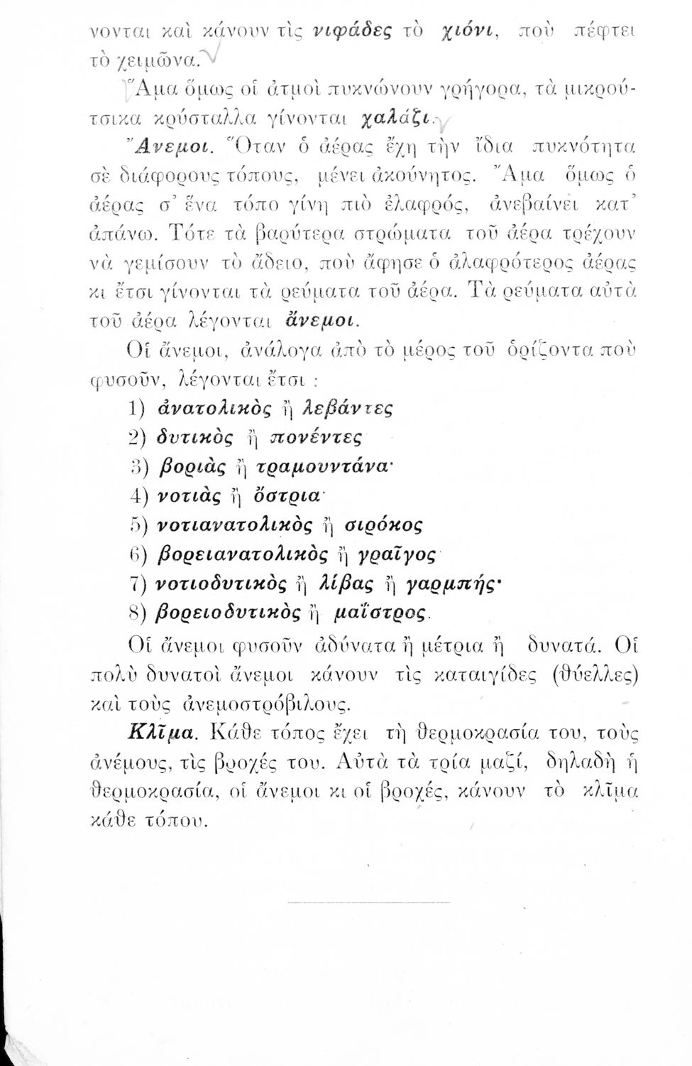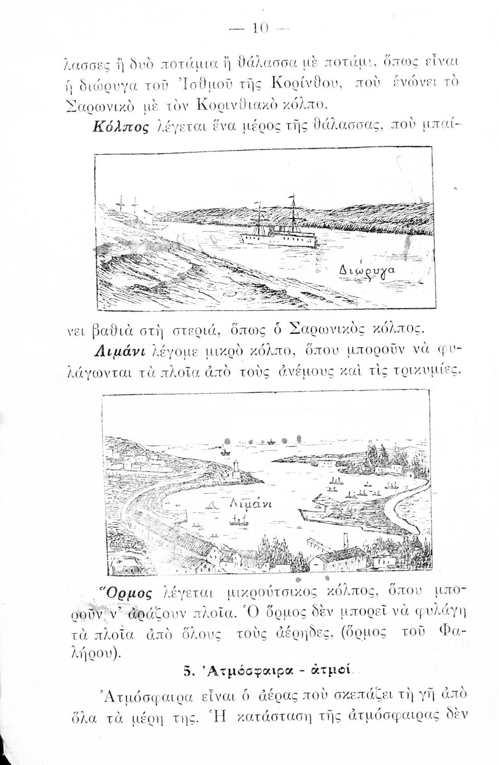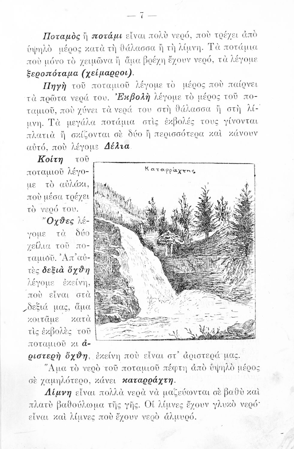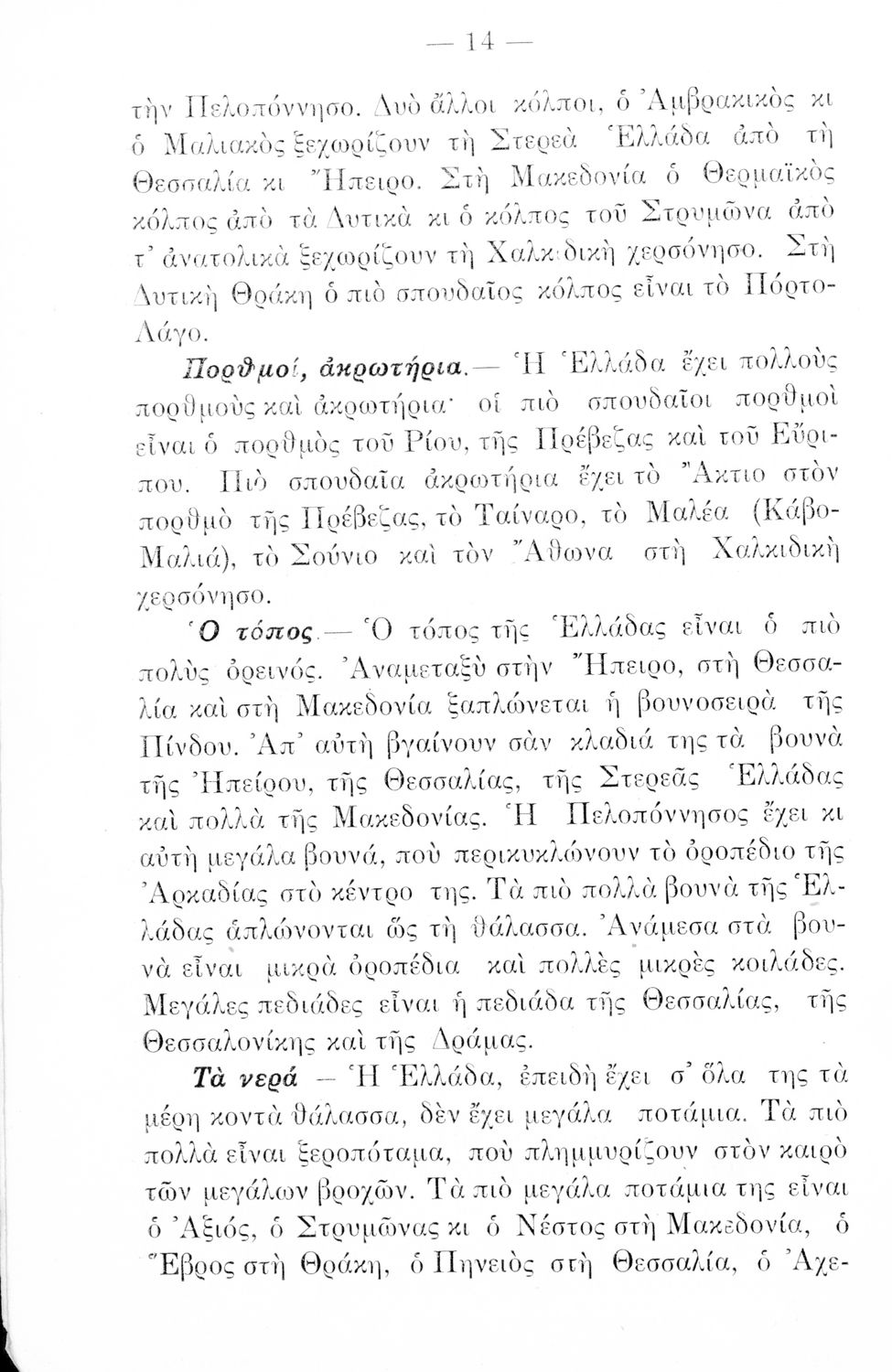 Σχολικό Εγχειρίδιο Γεωγραφίας Δημοτικού που περιέχει στοιχεία φυσικής γεωγραφίας και εξετάζει την Ελλάδα ανά διαμέρισμα και νομό από γεωφυσική και οικονομική άποψη.