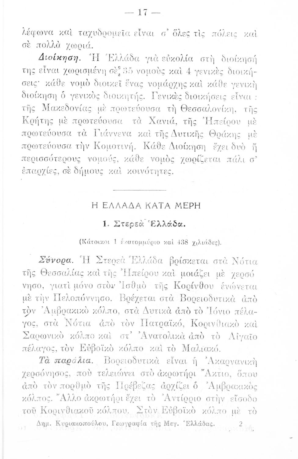 Σχολικό εγχειρίδιο Γεωγραφίας Α' Γυμνασίου που εξετάζει την Ελλάδα ανά διαμέρισμα και νομό από γεωφυσική, οικονομική και πολιτική άποψη.