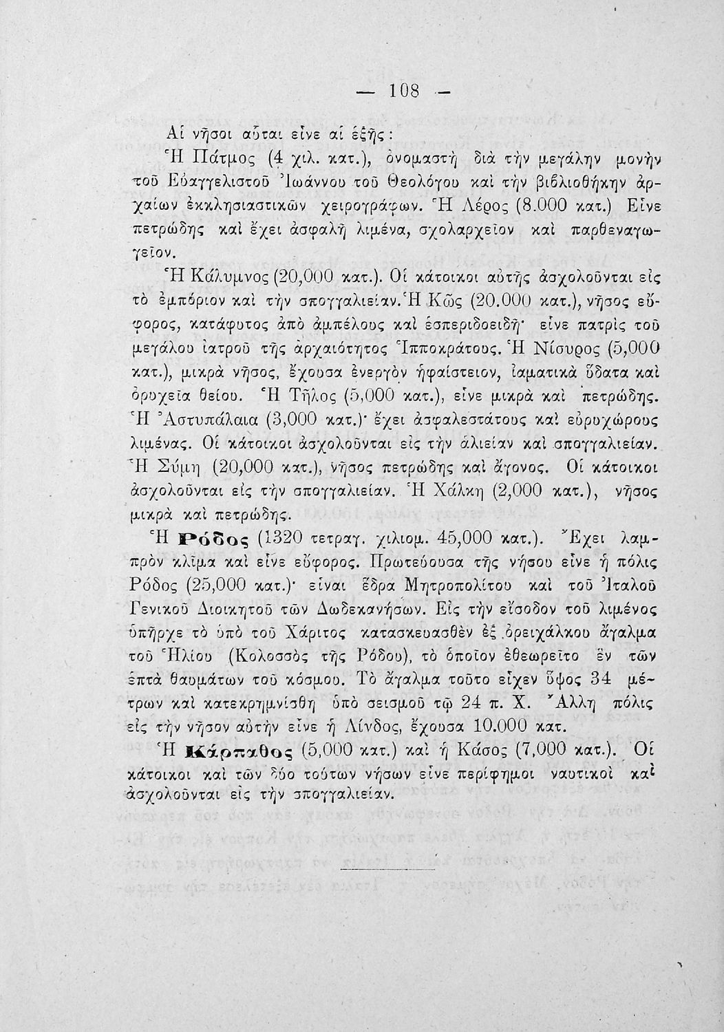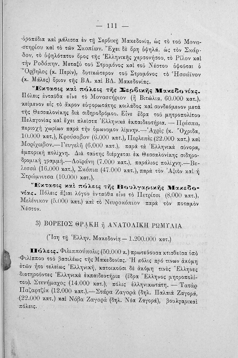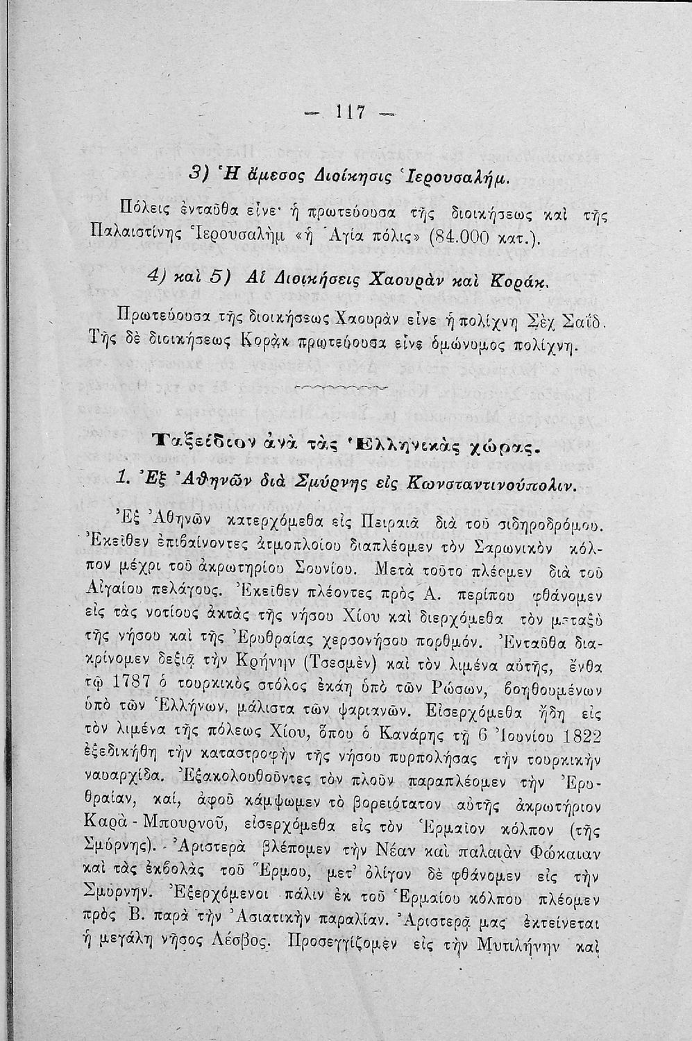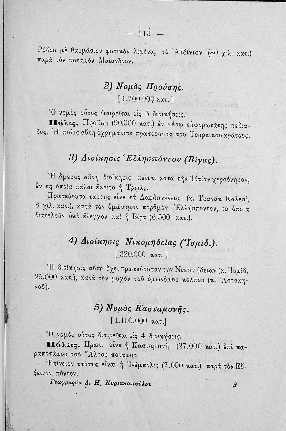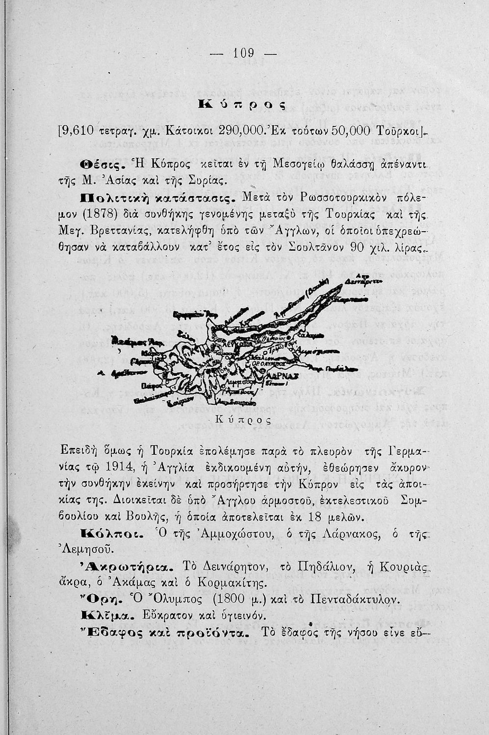 Σχολικό εγχειρίδιο Γεωγραφίας Δημοτικού που εξετάζει την Ελλάδα από γεωφυσική, πολιτική και οικονομική άποψη. Περιλαμβάνει και εκτενή αναφορά στην Τουρκική Θράκη, την Ανατολική Ρωμυλία, την Σερβική και Βουλγαρική Μακεδονία, την Μικρά Ασία, τη Συρία, την Παλαιστίνη, και την Κύπρο.