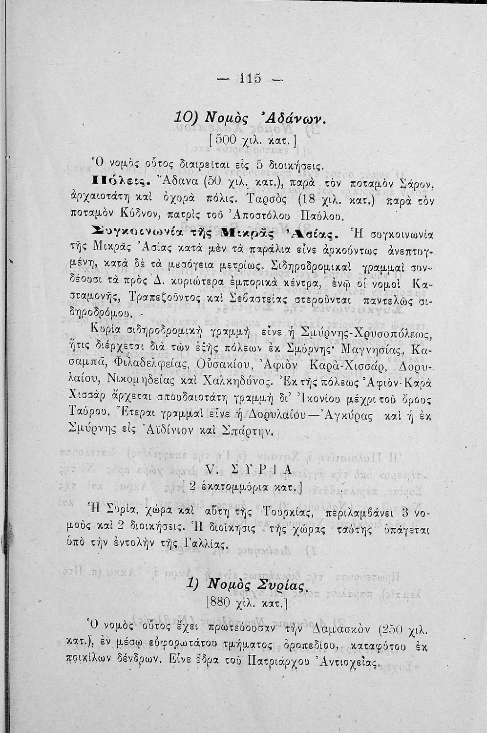 Βαθμίδα εκπαίδευσης: Πρωτοβάθμια Μάθημα: Γεωγραφία Γλώσσα: Καθαρεύουσα Παρουσίαση περιεχομένου: Σχολικό εγχειρίδιο Γεωγραφίας Δημοτικού που εξετάζει την Ελλάδα από γεωφυσική, πολιτική και οικονομική άποψη. Περιλαμβάνει και εκτενή αναφορά στην Τουρκική Θράκη, την Ανατολική Ρωμυλία, την Σερβική και Βουλγαρική Μακεδονία, την Μικρά Ασία, τη Συρία, την Παλαιστίνη, και την Κύπρο. |