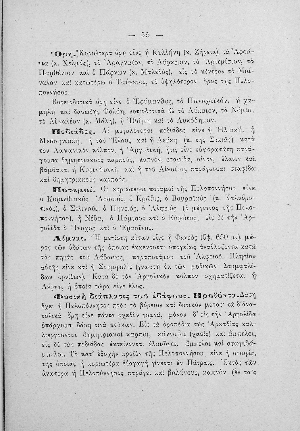 Σχολικό εγχειρίδιο Γεωγραφίας για τα Ελληνικά Σχολεία και τα Παρθεναγωγεία που αναλύει τη γεωμορφολογία της Γης και παρουσιάζει, διεξοδικά, κάποιους από τους νομούς της Ελλάδας και, συνοπτικά, τα γενικά ...