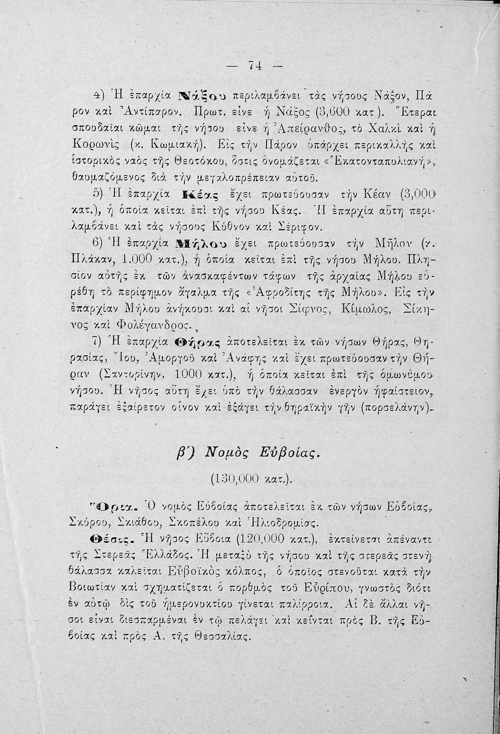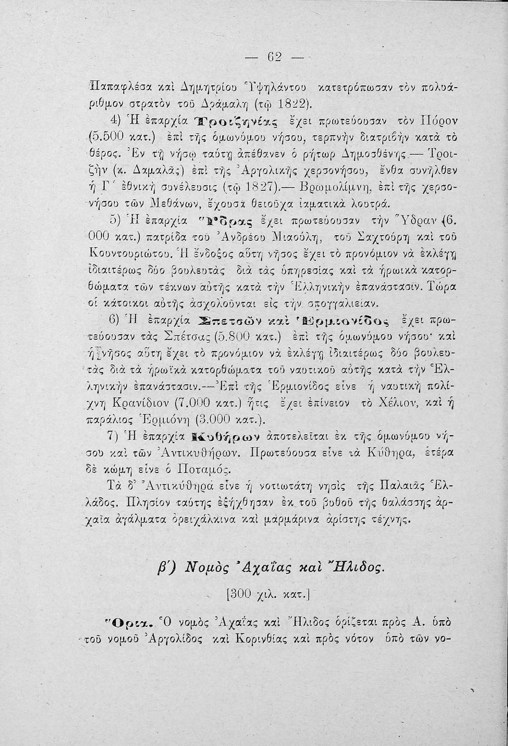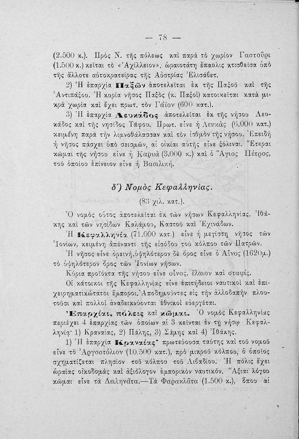 Σχολικό εγχειρίδιο Γεωγραφίας Δημοτικού που εξετάζει την Ελλάδα από γεωφυσική, πολιτική και οικονομική άποψη. Περιλαμβάνει και εκτενή αναφορά στην Τουρκική Θράκη, την Ανατολική Ρωμυλία, την Σερβική και Βουλγαρική Μακεδονία, την Μικρά Ασία, τη Συρία, την Παλαιστίνη, και την Κύπρο.