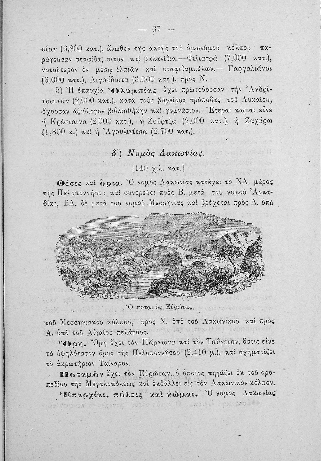 Κωδικός αναγνώρισης: 01-18574 Τίτλος: Γεωγραφία της Μεγάλης Ελλάδος μετά πολλών εικόνων προς χρήσιν των Δημοτικών Σχολείων εν γένει Συγγραφέας: Δ. Η. Κυριακόπουλος Μέγεθος και υπόστρωμα: Σχολικό εγχειρίδιο, 21εκ., 120 σελίδες. Εικόνες (ασπρόμαυρες). |