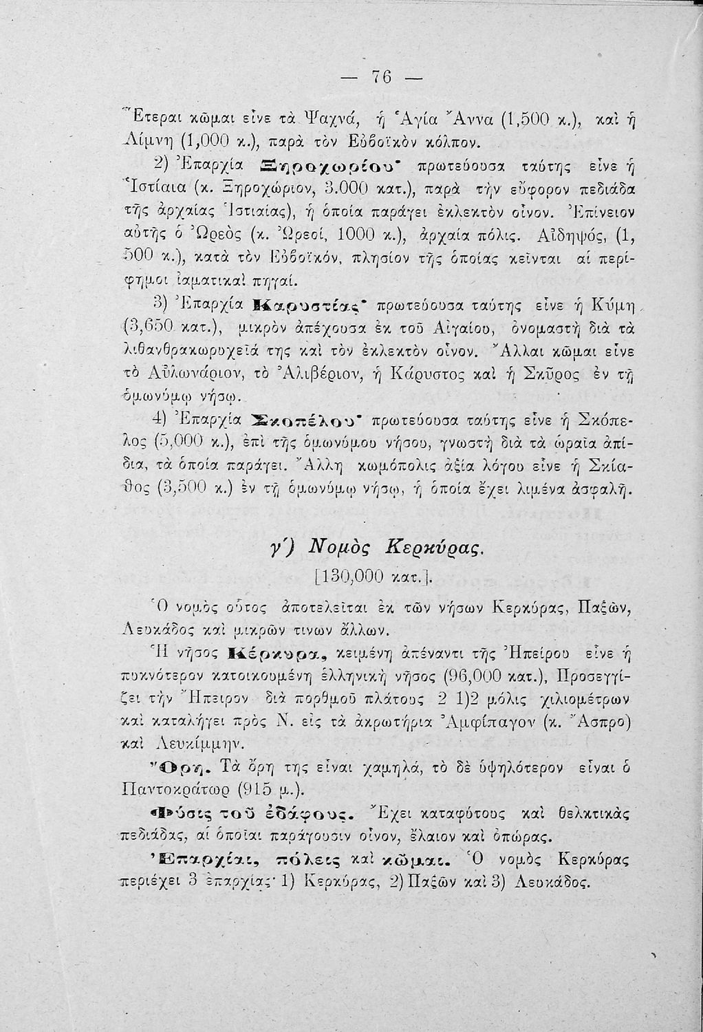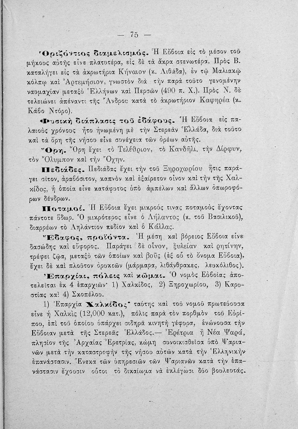 Βαθμίδα εκπαίδευσης: Πρωτοβάθμια Μάθημα: Γεωγραφία Γλώσσα: Καθαρεύουσα Παρουσίαση περιεχομένου: Σχολικό εγχειρίδιο Γεωγραφίας Δημοτικού που εξετάζει την Ελλάδα από γεωφυσική, πολιτική και οικονομική άποψη. Περιλαμβάνει και εκτενή αναφορά στην Τουρκική Θράκη, την Ανατολική Ρωμυλία, την Σερβική και Βουλγαρική Μακεδονία, την Μικρά Ασία, τη Συρία, την Παλαιστίνη, και την Κύπρο. |