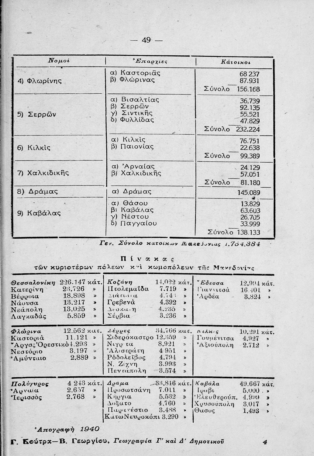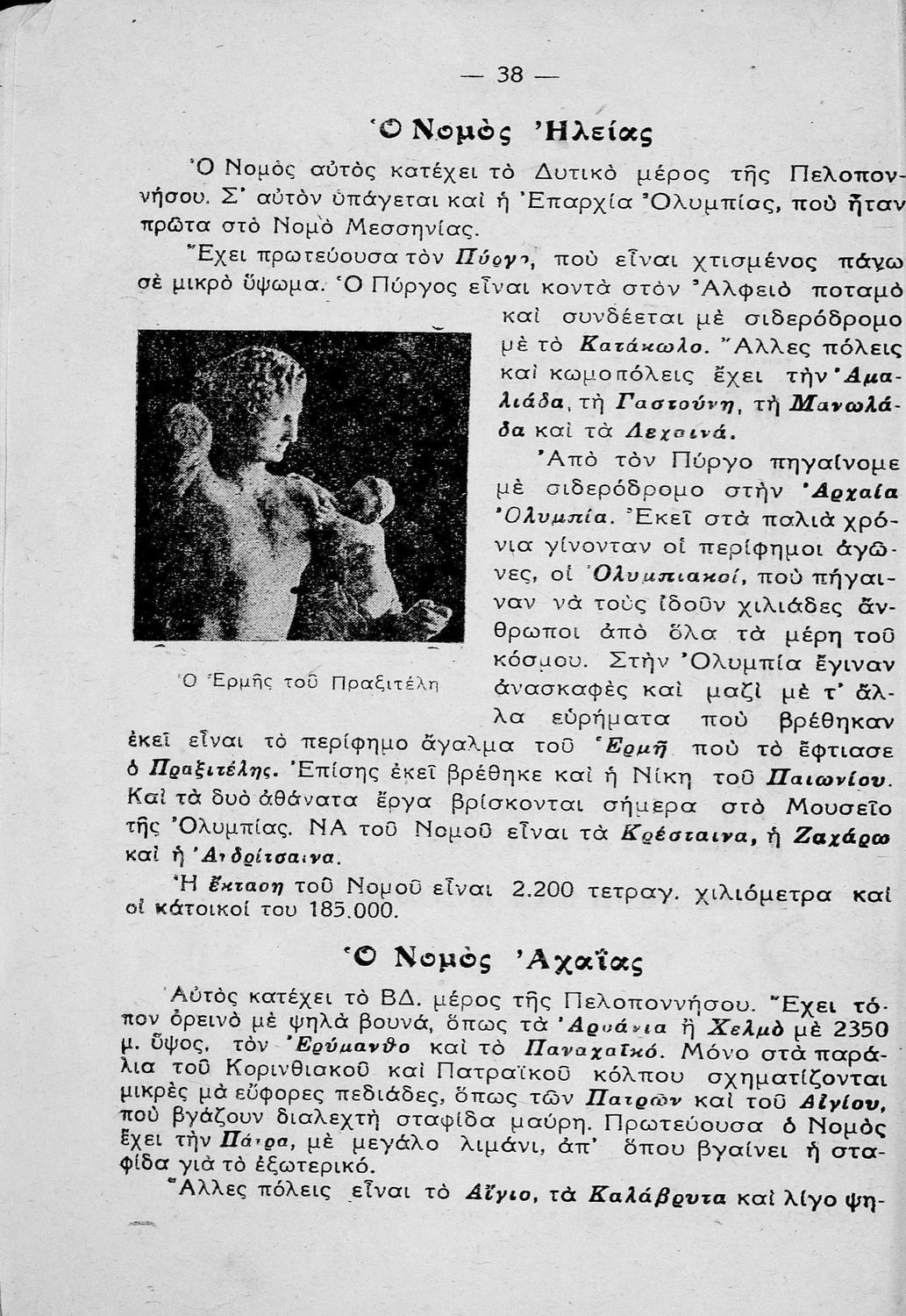 Σχολικό εγχειρίδιο Γεωγραφίας για τη Γ΄, Δ΄ Δημοτικού. Μελετά την Ελλάδα ανά γεωγραφικό νομό με πληροφορίες από το χάρτη της περιοχής και στοιχεία της ιστορίας και της οικονομικής ζωής.