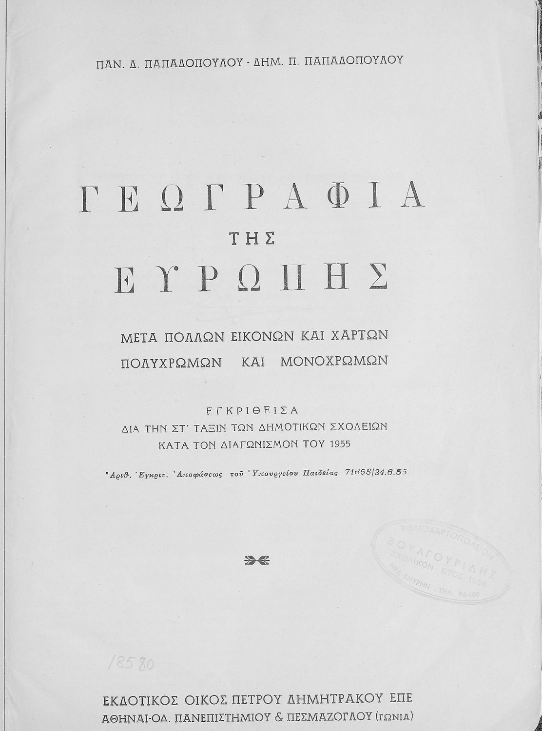 Εκδότης: Πέτρος Δημητράκος Τόπος έκδοσης: Αθήνα Υπουργική απόφαση / Σύμβαση: 71658/24-6-1955 Έτος έγκρισης: 1955 |