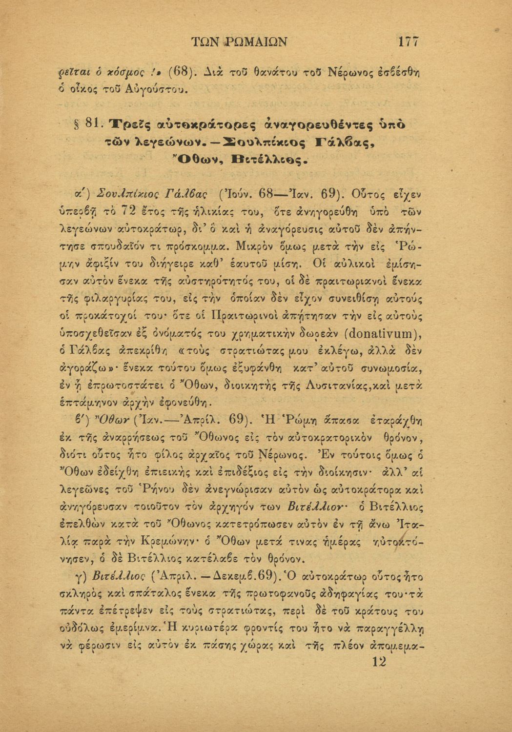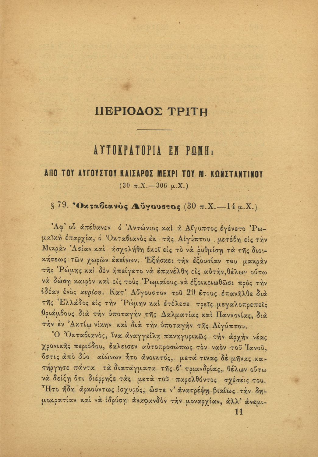 Τίτλος: Ιστορία των Ρωμαίων μέχρι του Μεγάλου Κωνσταντίνου προς χρήσιν των μαθητών της Α΄ τάξεως των Γυμνασίων