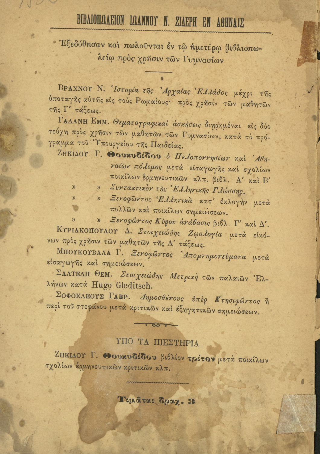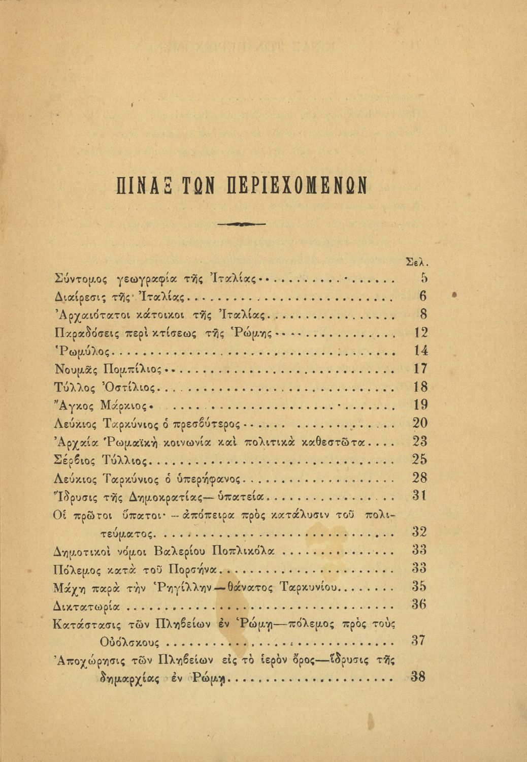 Τίτλος: Ιστορία των Ρωμαίων μέχρι του Μεγάλου Κωνσταντίνου προς χρήσιν των μαθητών της Α΄ τάξεως των Γυμνασίων