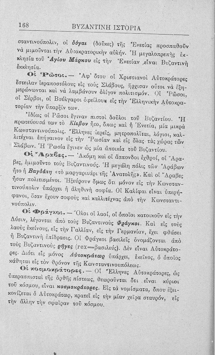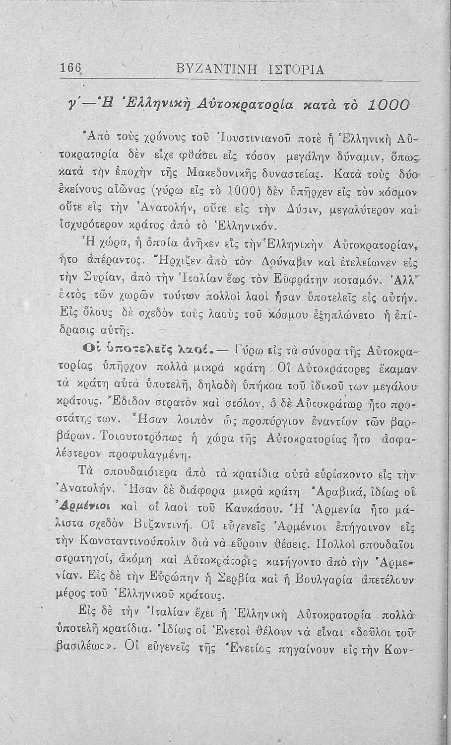 Σχολικό εγχειρίδιο Ιστορίας Β' Ελληνικού Σχολείου που καλύπτει την χρονική περίοδο από τα ελληνιστικά χρόνια, μέχρι την άλωση της Κωνσταντινούπολης από τους Φράγκους. Ο συγγραφέας ήταν Καθηγητής Πανεπιστημίου.