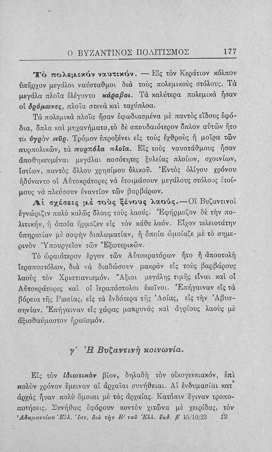 LDR 01363 2200217 4500 035 ## _a01-18584 040 ## _aΙνστιτούτο Εκπαιδευτικής Πολιτικής 041 ## _ael 100 ## _aΑΔ. Ι. Αδαμαντίου 110 ## _a18584 245 0# _aΕλληνική Ιστορία (Ελληνιστικοί-Ρωμαϊκοί και Βυζαντινοί Χρόνοι) δια την Β΄ Τάξιν των Ελληνικών Σχολείων 250 ## _a2η Έκδοση 260 ## _aΑθήνα _bΒιβλιοπωλείο Ιωάννη Ν. Σιδέρη _c1924 300 ## _a216 _bΣκίτσα και χάρτες (ασπρόμαυρα) 520 ## _aΣχολικό εγχειρίδιο Ιστορίας Β' Ελληνικού Σχολείου που καλύπτει την χρονική περίοδο από τα ελληνιστικά χρόνια, μέχρι την άλωση της Κωνσταντινούπολης από τους Φράγκους. Ο συγγραφέας ήταν Καθηγητής Πανεπιστημίου. 521 ## _aΒ' Ελληνικού Σχολείου 522 ## _aΕλλάδα 546 ## _aΚαθαρεύουσα 563 ## _aΜαλακό Εξώφυλλο 583 ## _a16224/18-5-1923 _c1923 650 #4 _aΙουστινιανός _aΚομνηνοί _aΜακεδονία _aΡώμη _aΧριστιανισμός