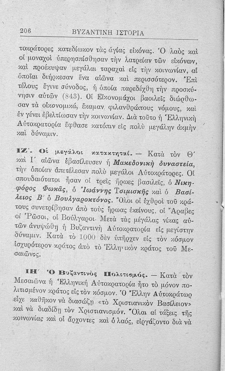 Σχολικό εγχειρίδιο Ιστορίας Β' Ελληνικού Σχολείου και Παρθεναγωγείου που καλύπτει την περίοδο από την ίδρυση της Μακεδονικής Ηγεμονίας μέχρι την άλωση της Κωνσταντινούπολης από τους Φράγκους.