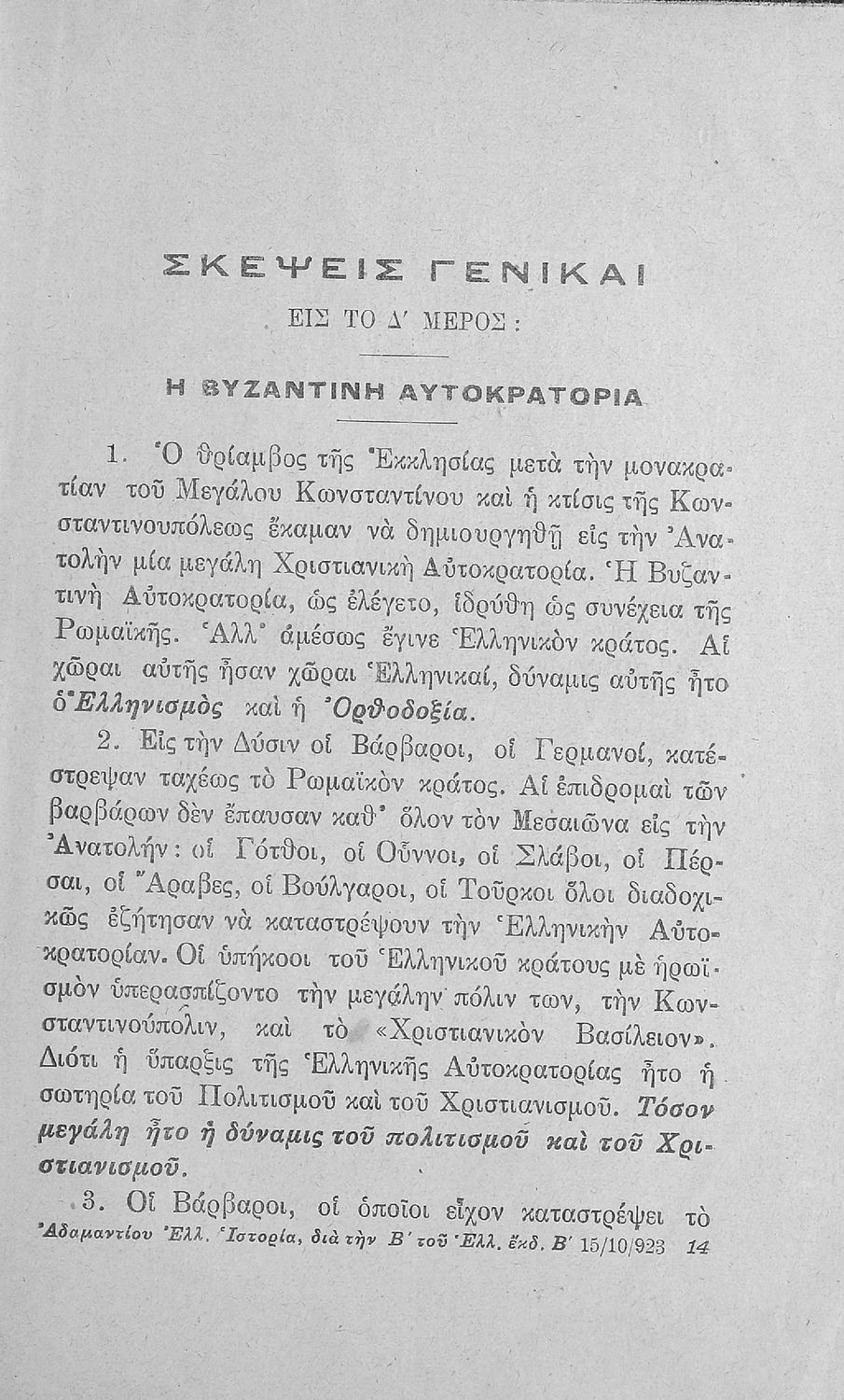 Τίτλος: Ελληνική Ιστορία (Ελληνιστικοί-Ρωμαϊκοί και Βυζαντινοί Χρόνοι) δια την Β΄ Τάξιν των Ελληνικών Σχολείων