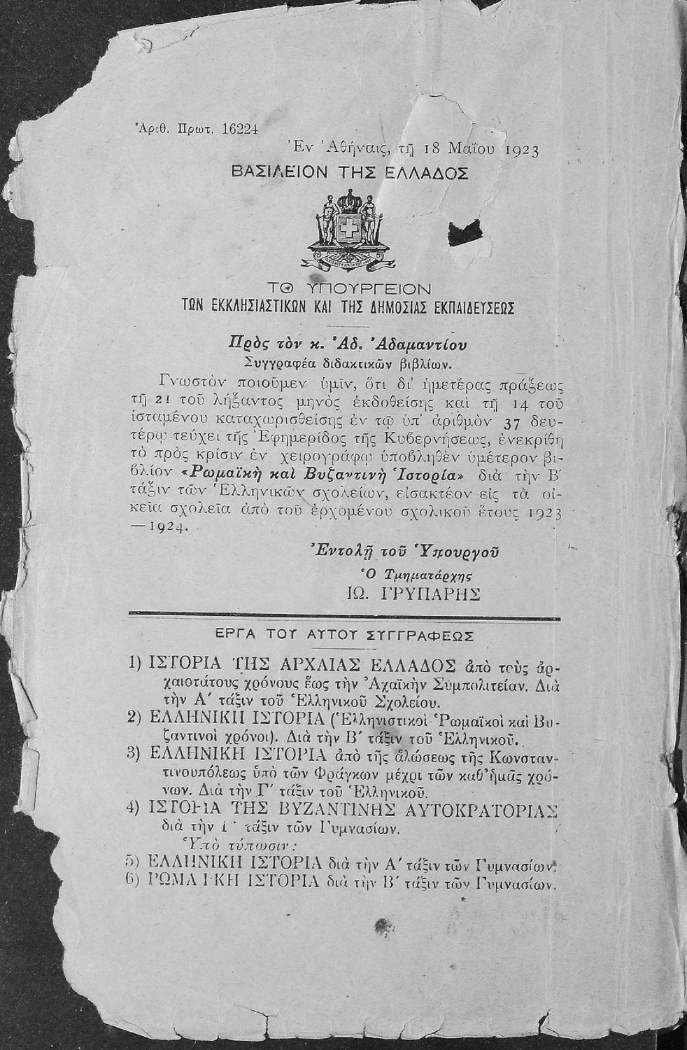Υπουργική απόφαση / Σύμβαση: 16224/18-5-1923