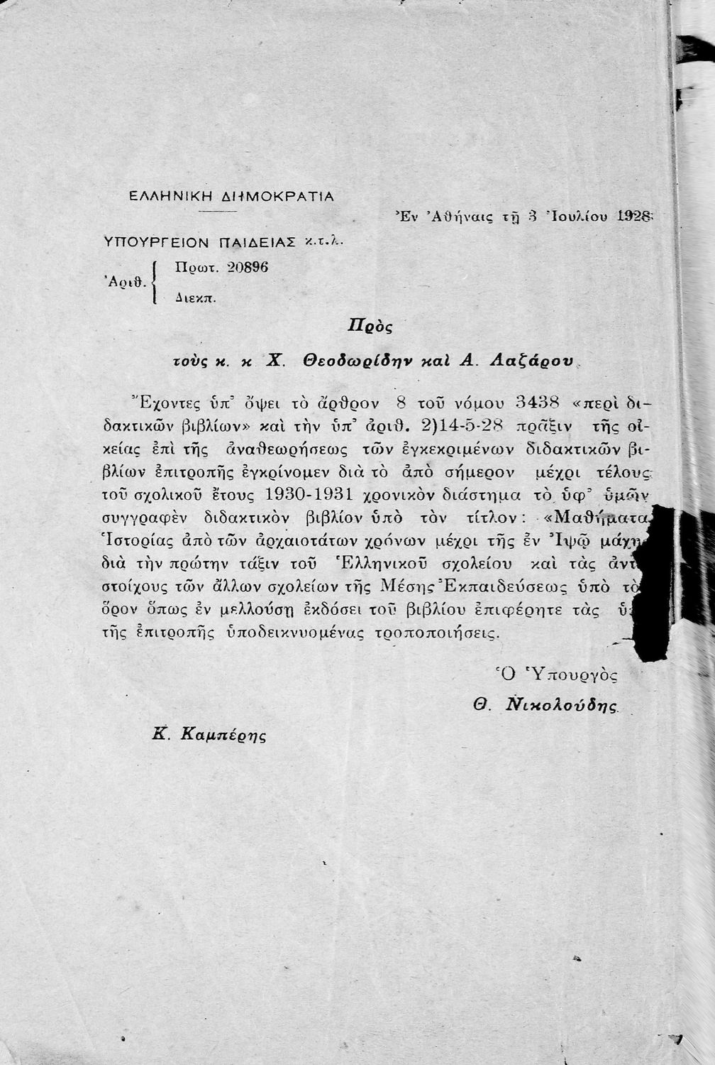 Υπουργική απόφαση / Σύμβαση: 20896/3-7-1928