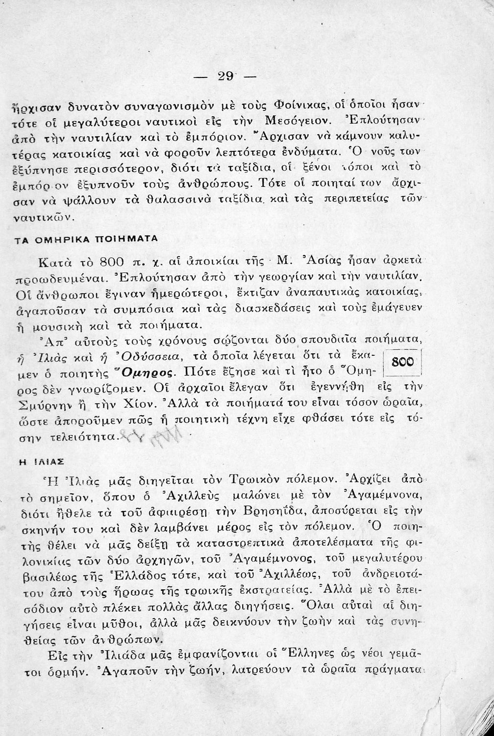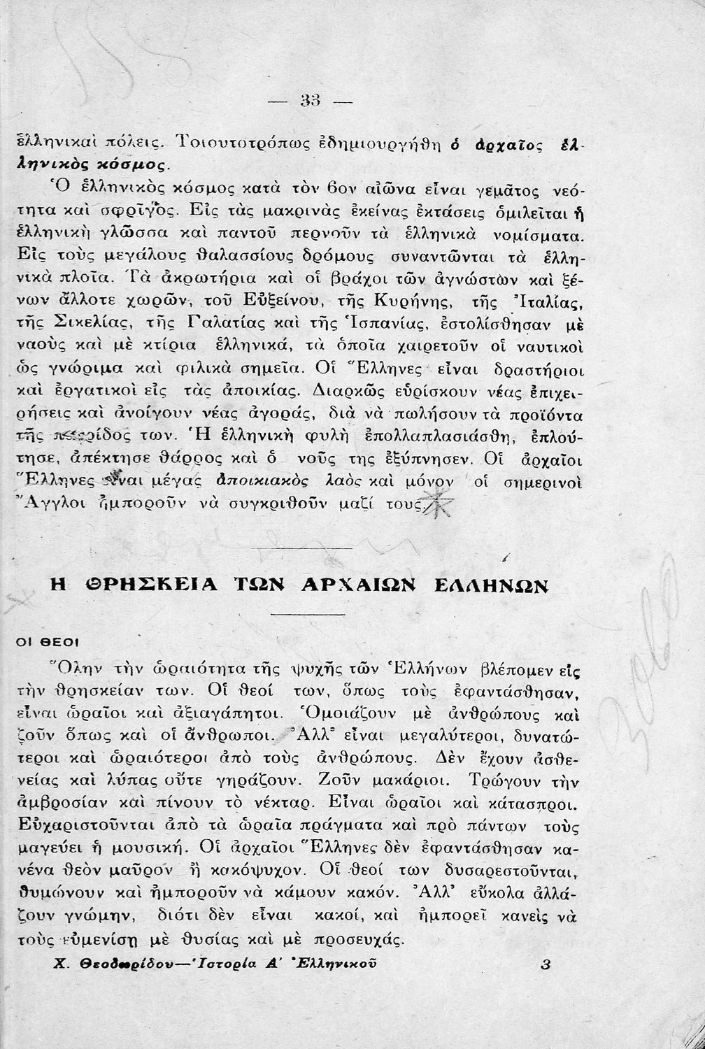 Σχολικό εγχειρίδιο Ιστορίας Α΄ Ελληνικού και Παρθεναγωγείου που καλύπτει την περίοδο από τους μυθικούς και ηρωικούς χρόνους μέχρι την μάχη της Μαντινείας και τον θάνατο του Επαμεινώνδα.