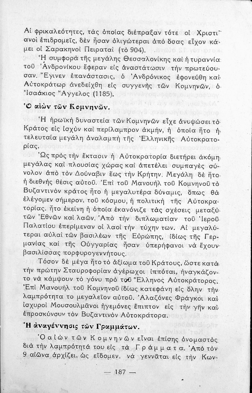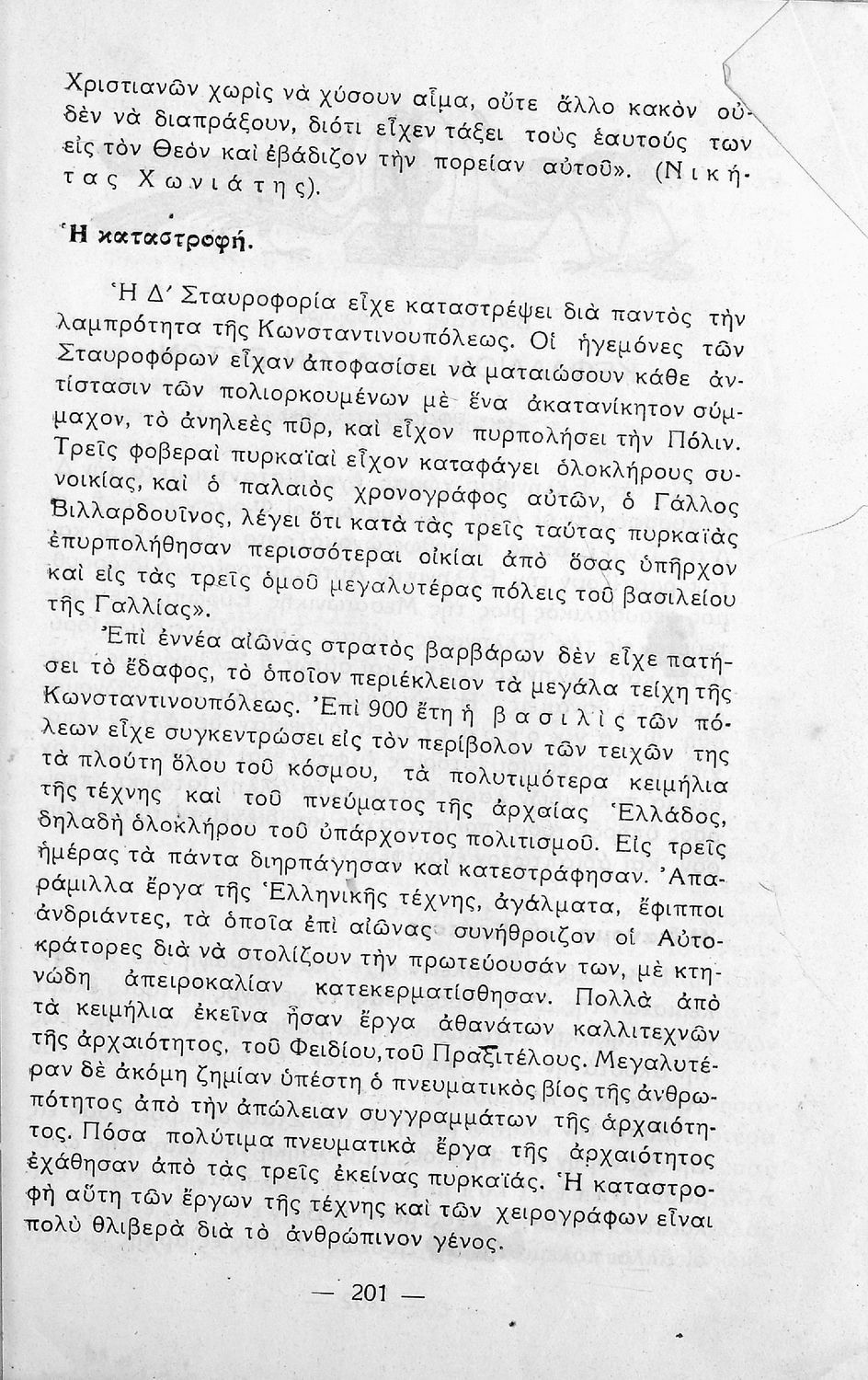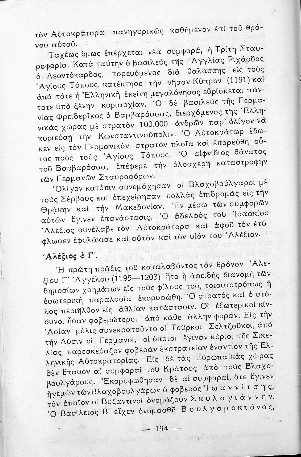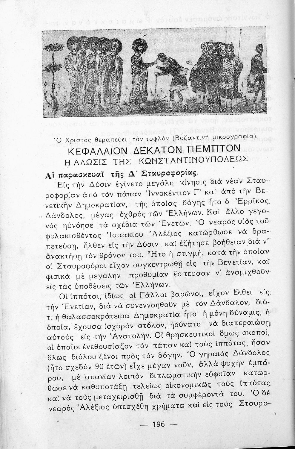 Σχολικό εγχειρίδιο Ιστορίας. Δ΄ Γυμνασίου που καλύπτει την περίοδο από την ενθρόνιση του Ιουστινιανού μέχρι και την περίοδο της Φραγκοκρατίας και την άλωση της Κωνσταντινούπολης. Σκοπό έχει να καλλιεργήσει την εθνική συνείδηση.