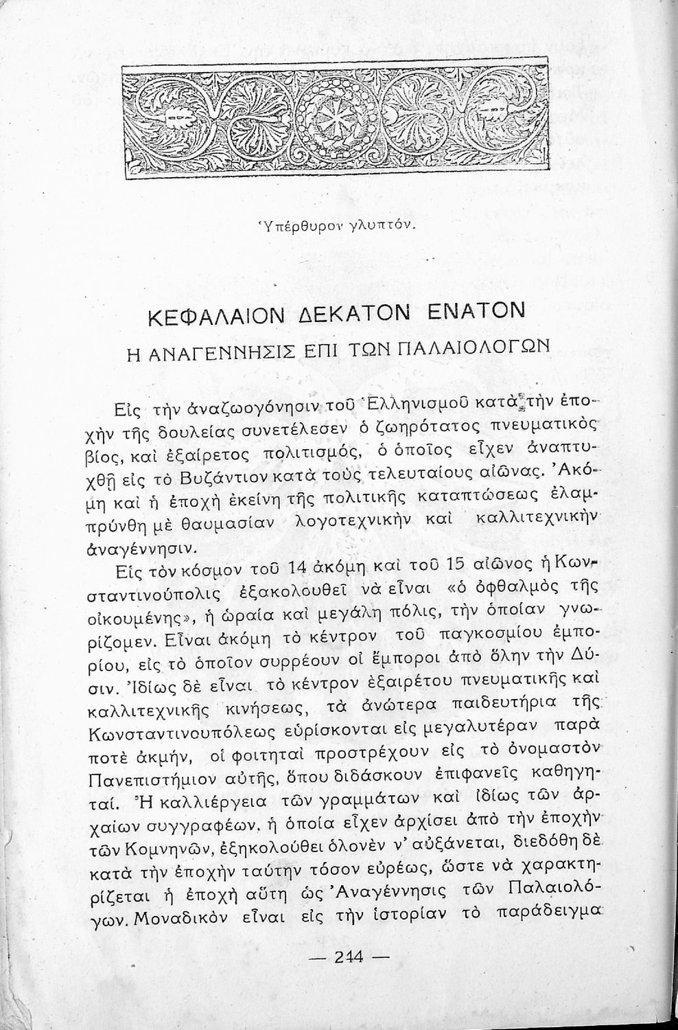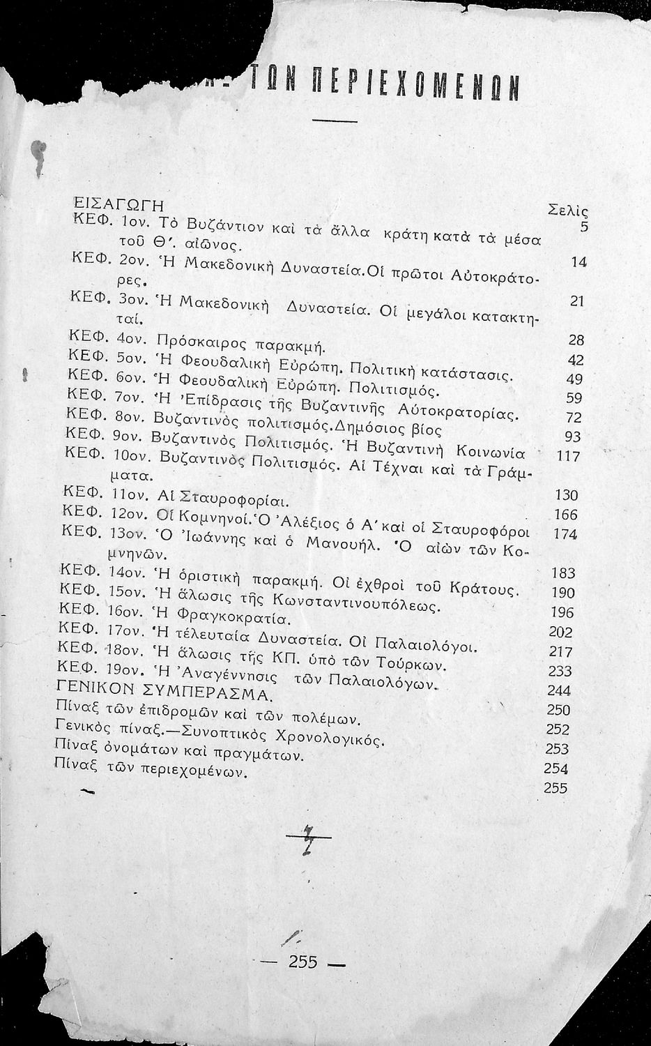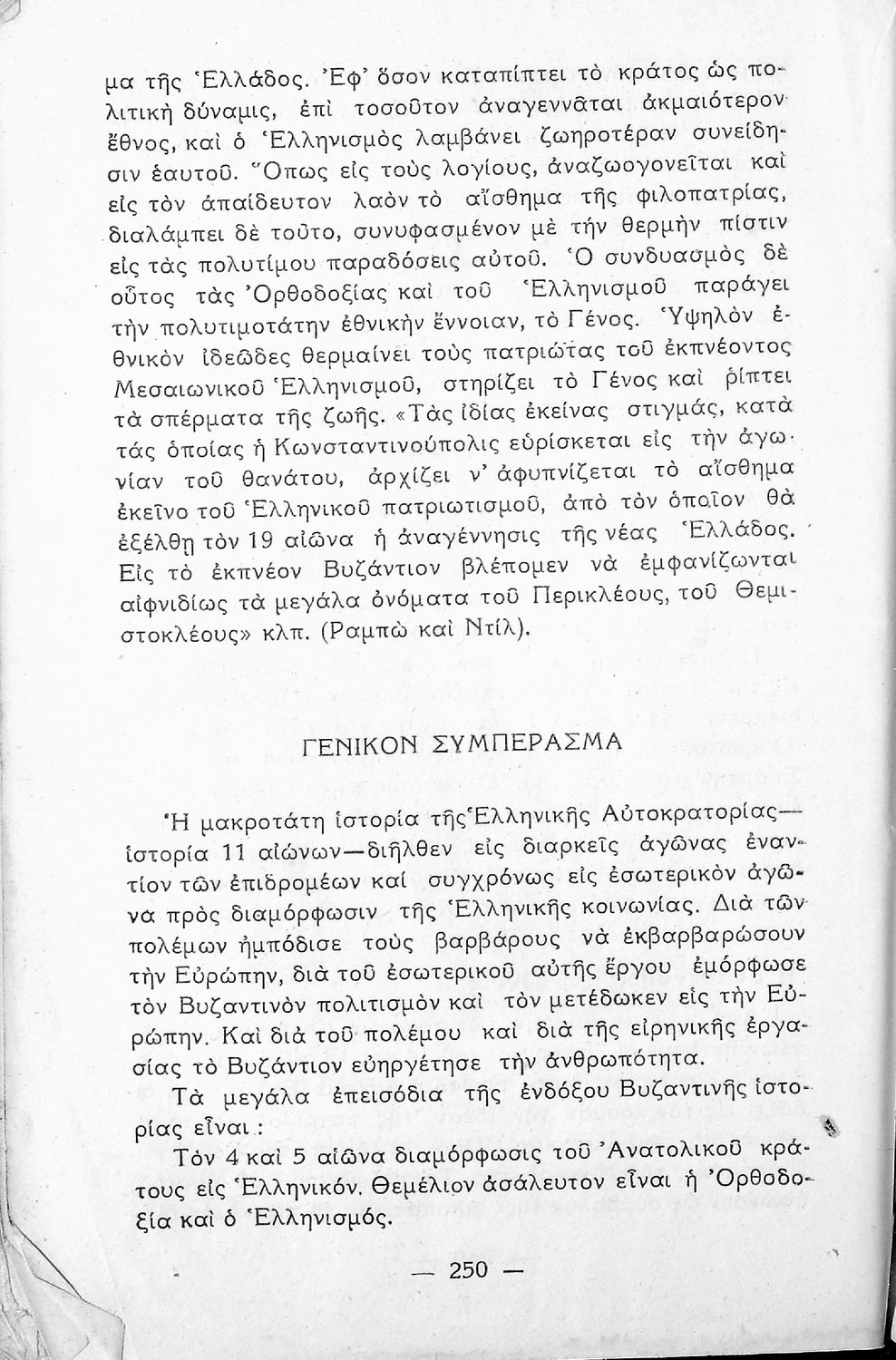 Σχολικό εγχειρίδιο Ιστορίας. Δ΄ Γυμνασίου που καλύπτει την περίοδο από την ενθρόνιση του Ιουστινιανού μέχρι και την περίοδο της Φραγκοκρατίας και την άλωση της Κωνσταντινούπολης. Σκοπό έχει να καλλιεργήσει την εθνική συνείδηση.