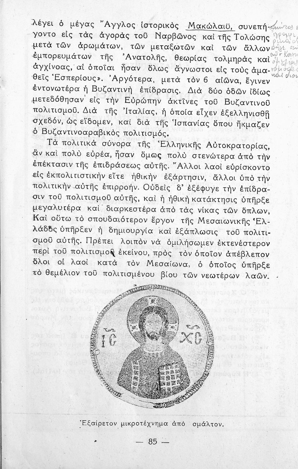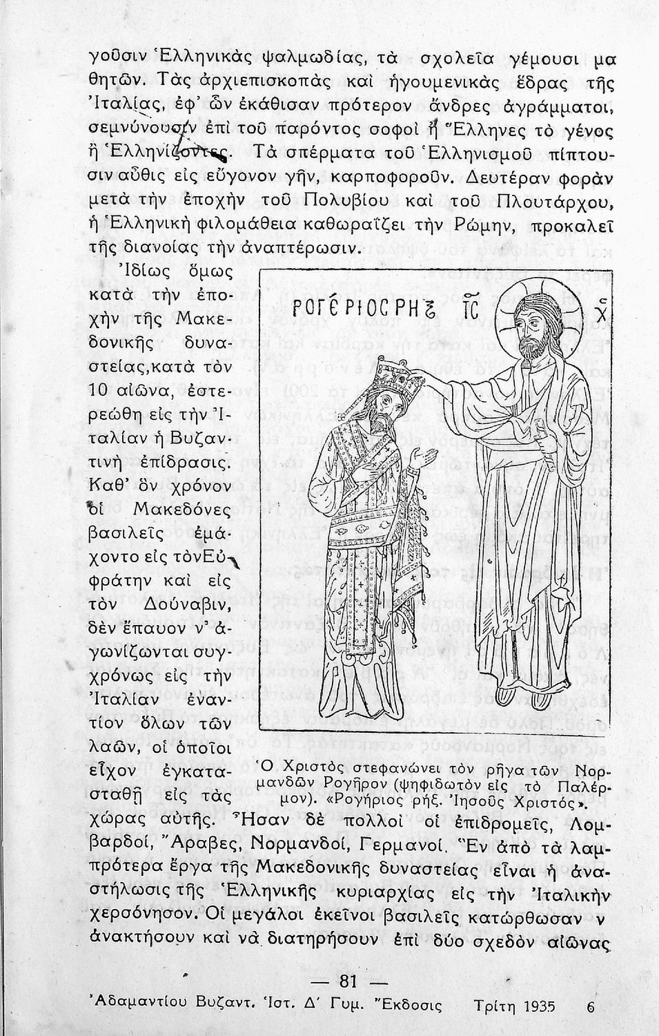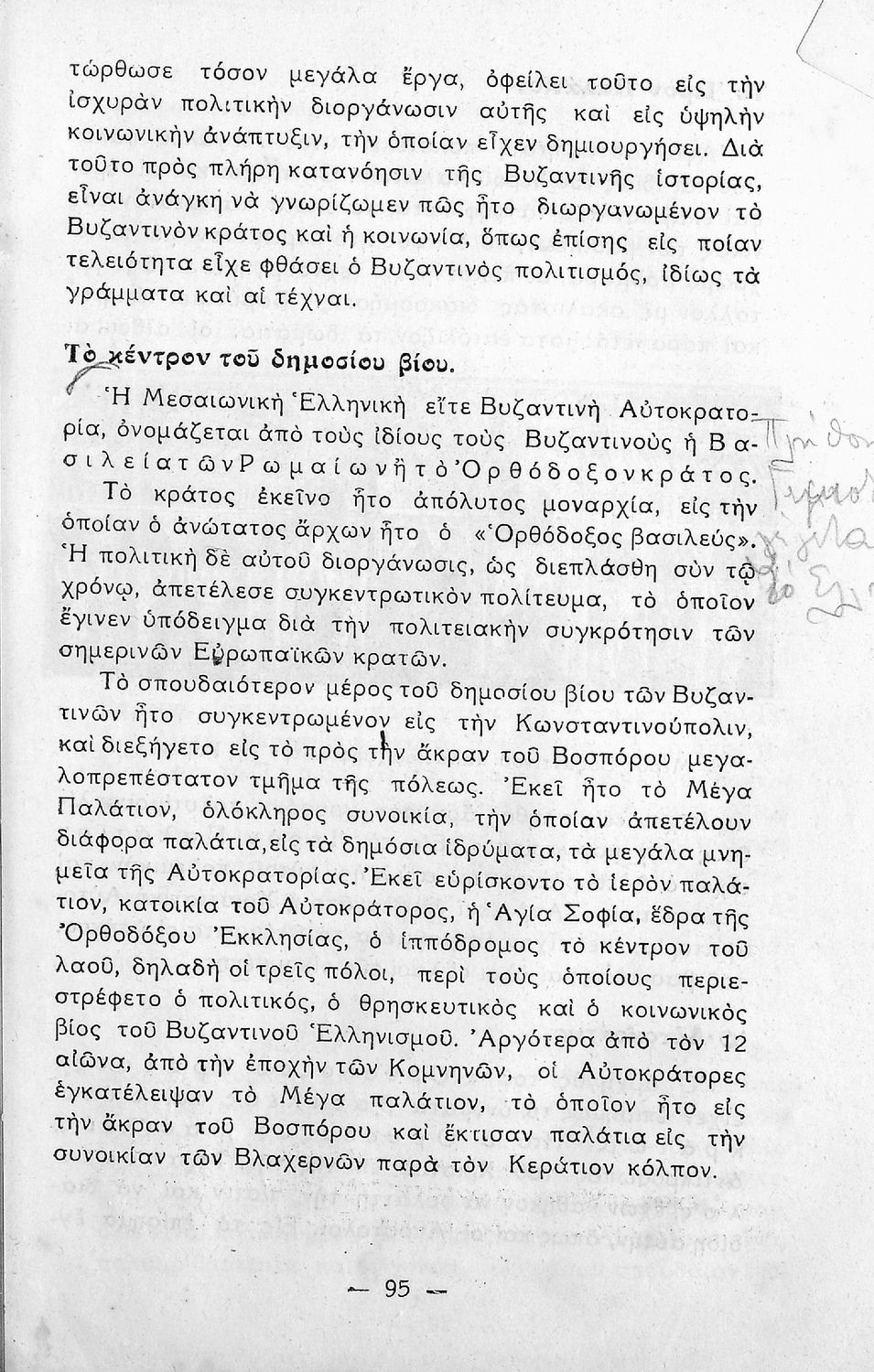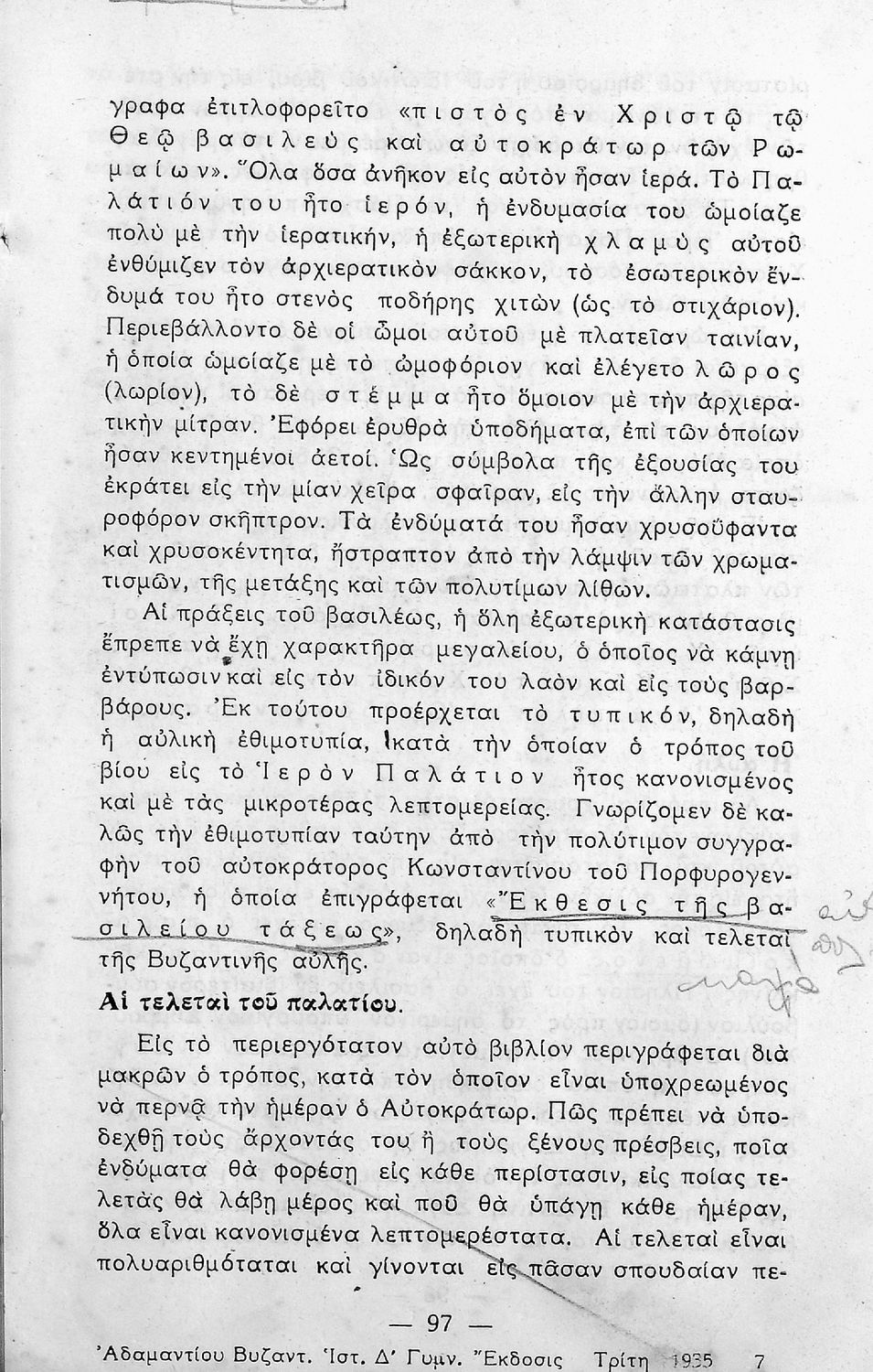 Σχολικό εγχειρίδιο Ιστορίας. Δ΄ Γυμνασίου που καλύπτει την περίοδο από την ενθρόνιση του Ιουστινιανού μέχρι και την περίοδο της Φραγκοκρατίας και την άλωση της Κωνσταντινούπολης. Σκοπό έχει να καλλιεργήσει την εθνική συνείδηση.