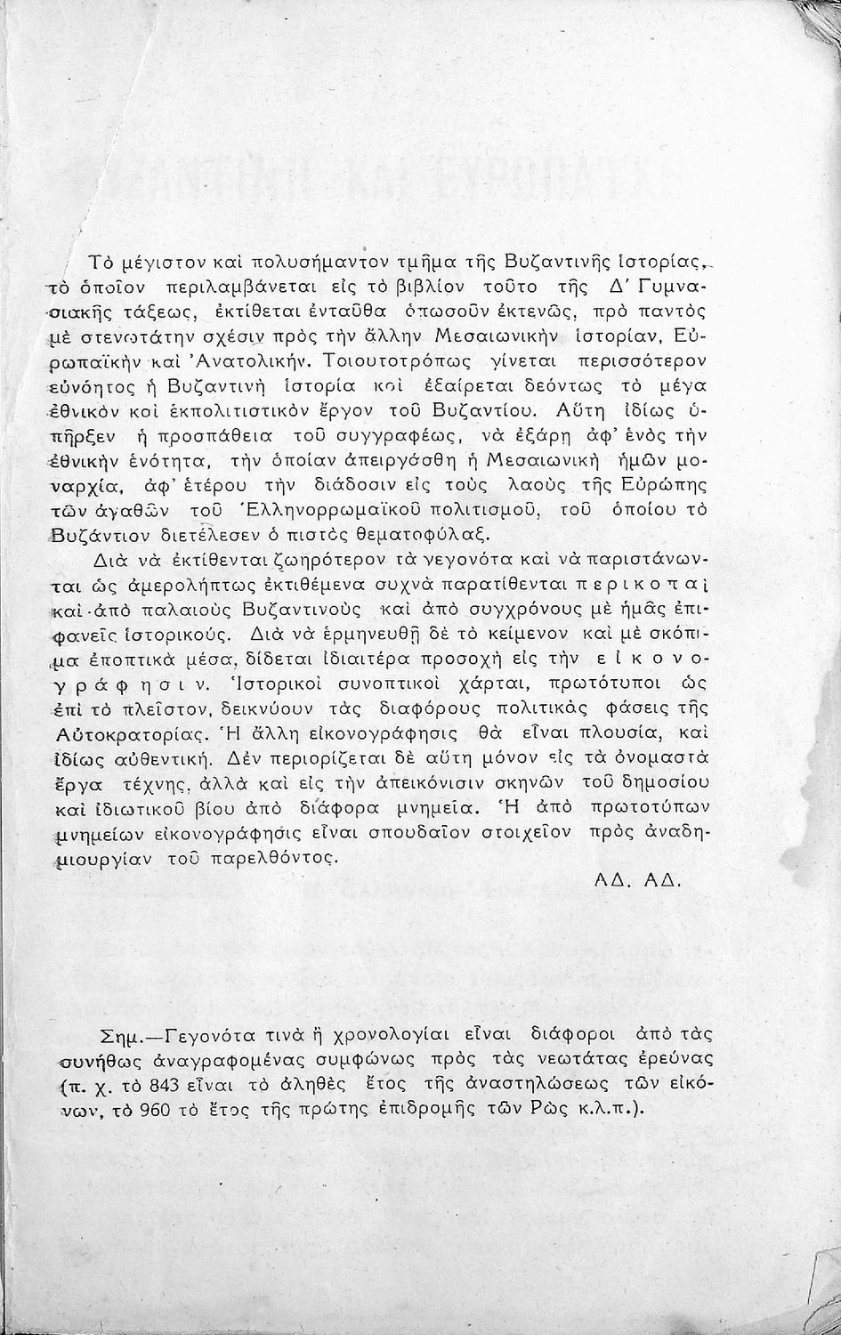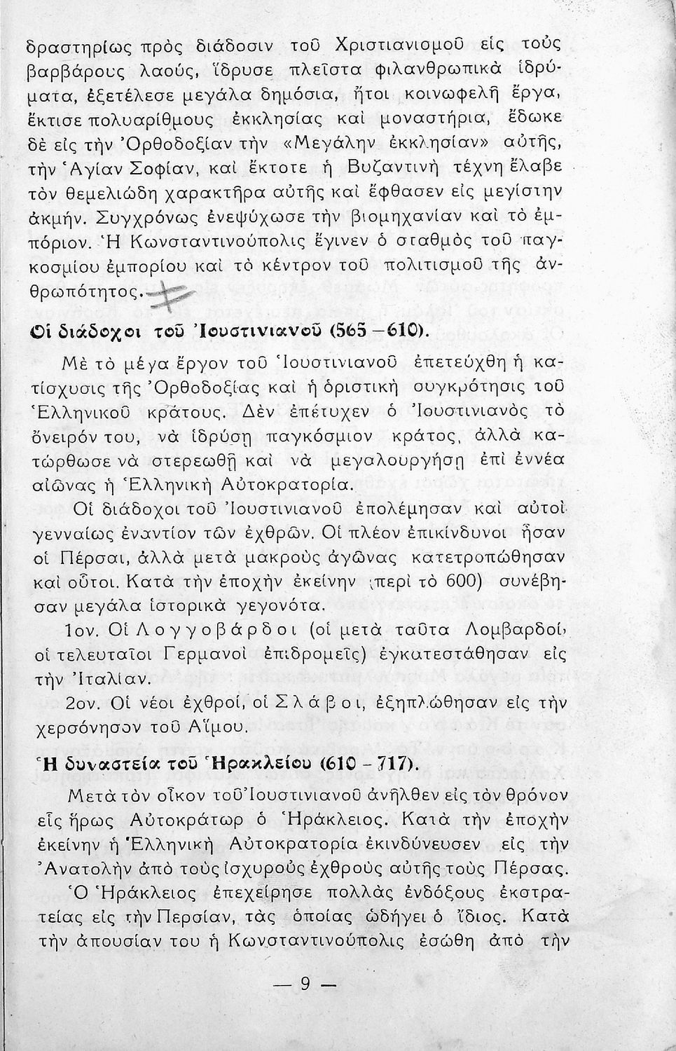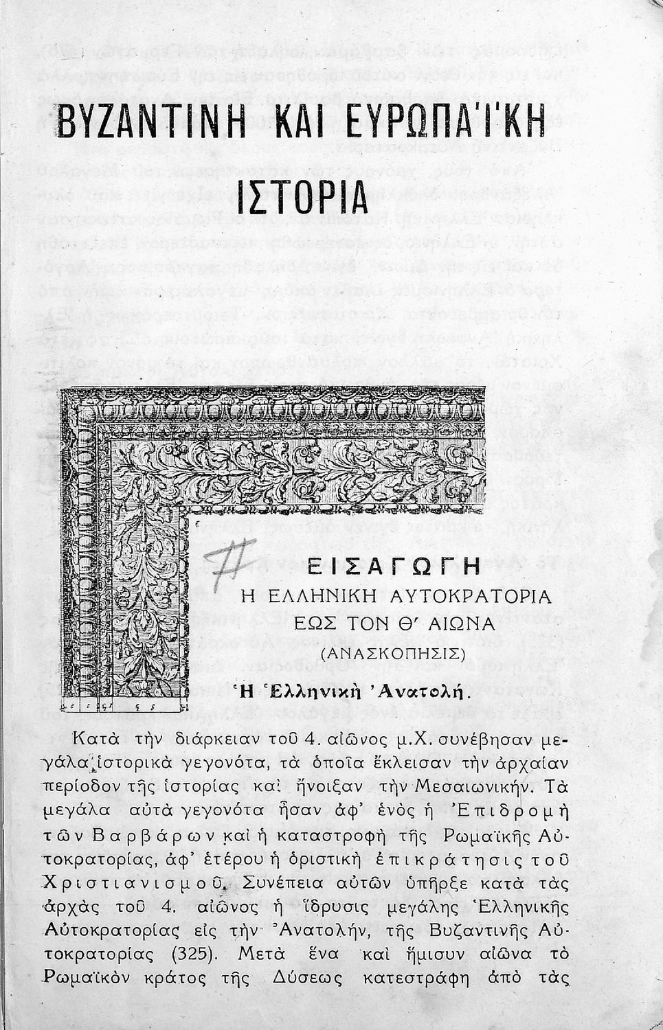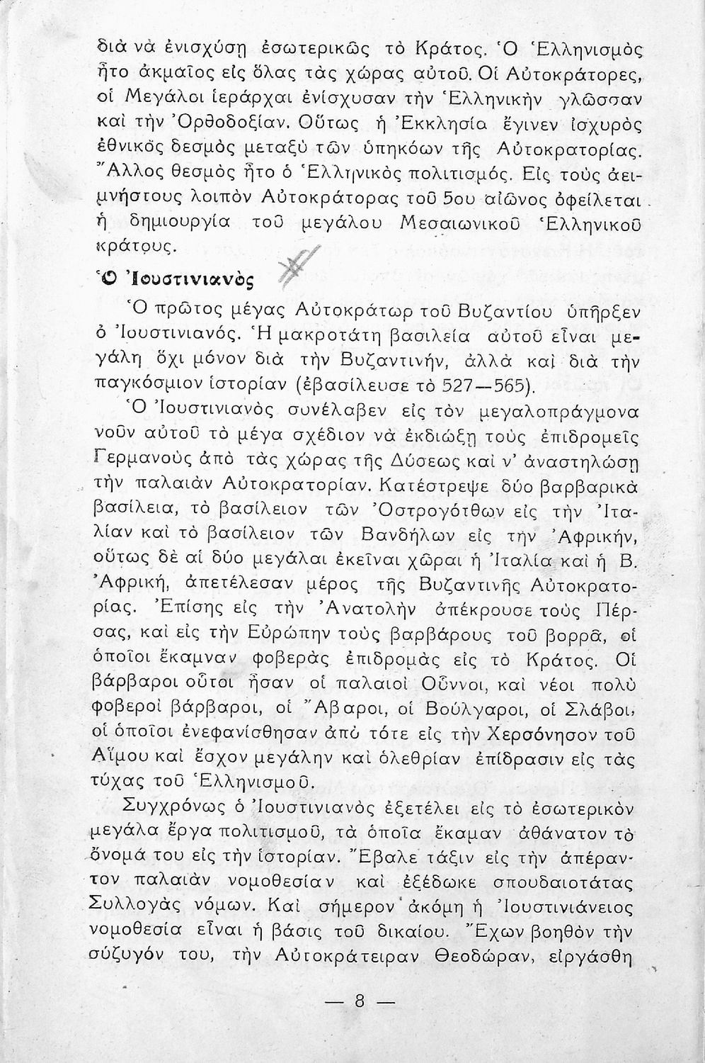 Σχολικό εγχειρίδιο Ιστορίας. Δ΄ Γυμνασίου που καλύπτει την περίοδο από την ενθρόνιση του Ιουστινιανού μέχρι και την περίοδο της Φραγκοκρατίας και την άλωση της Κωνσταντινούπολης. Σκοπό έχει να καλλιεργήσει την εθνική συνείδηση.
